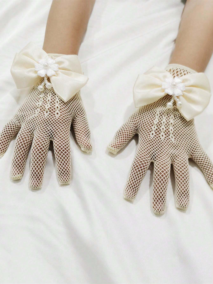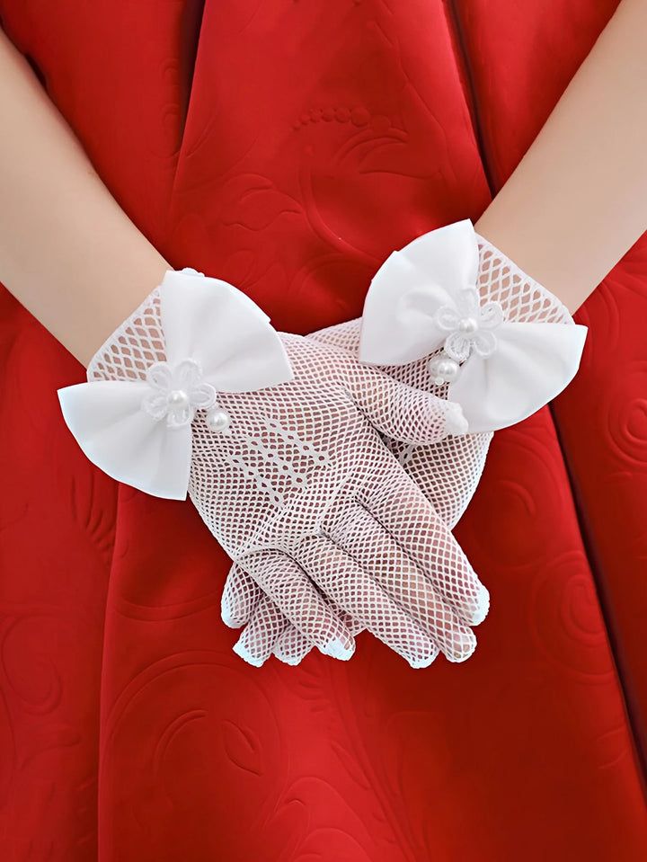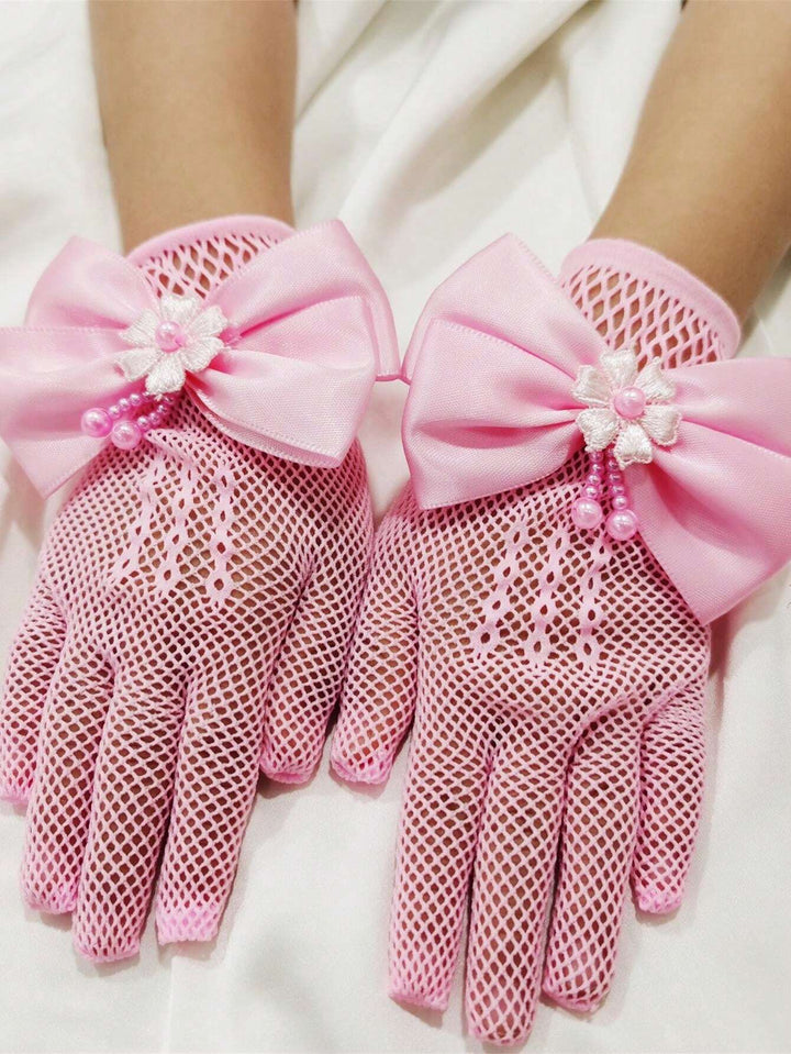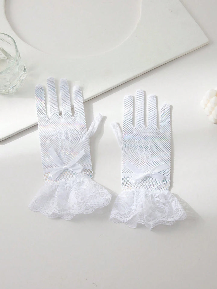 1 Pair Children Lace Hollow Bow Princess Gloves