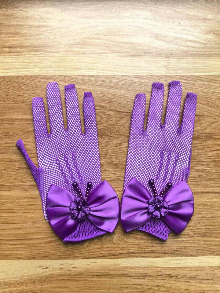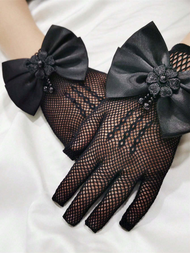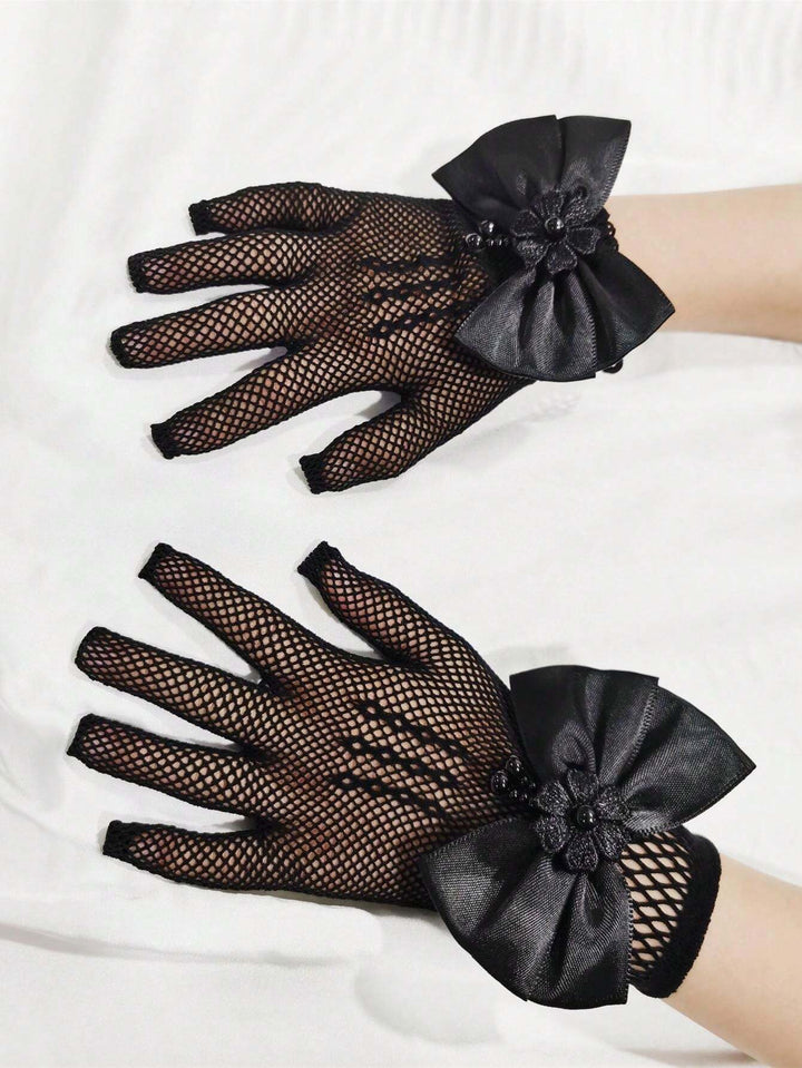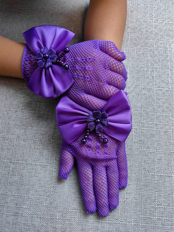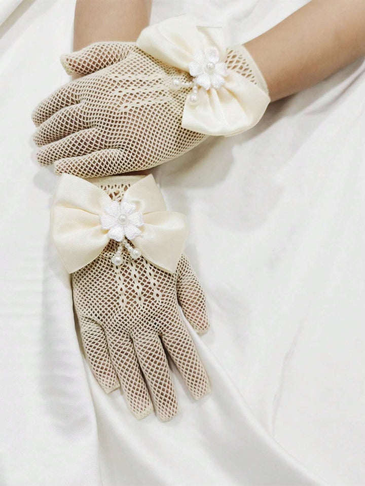 1 Pair Children Lace Hollow Bow Princess Gloves