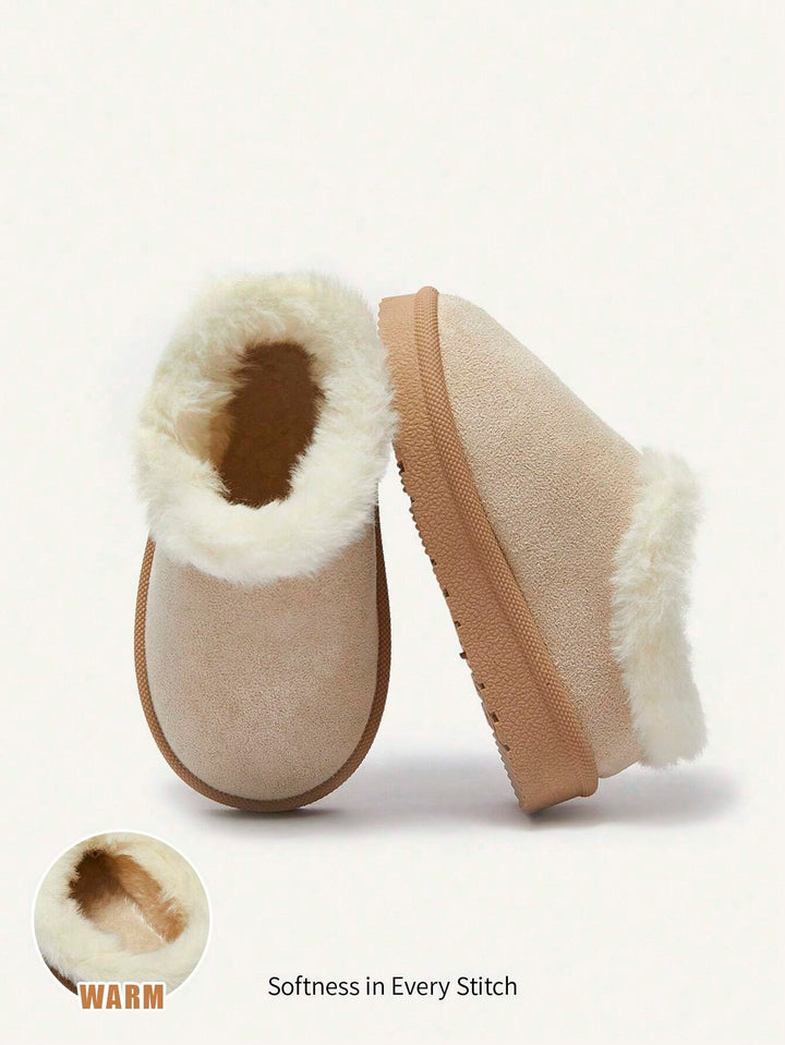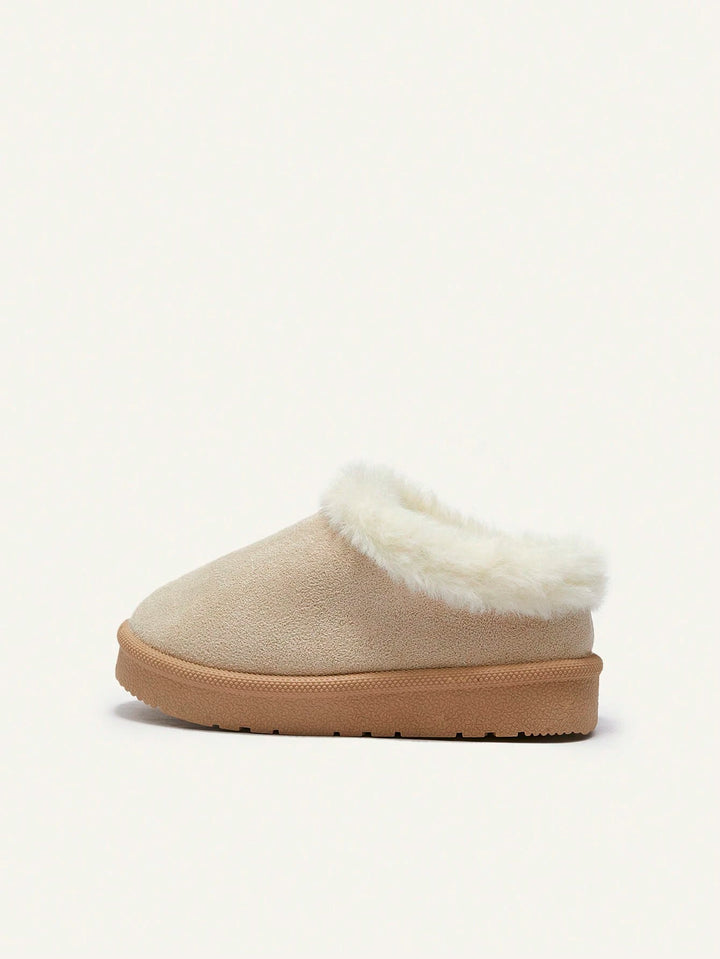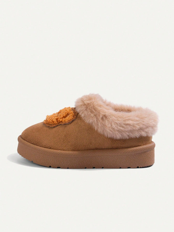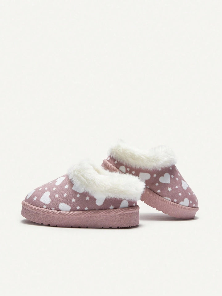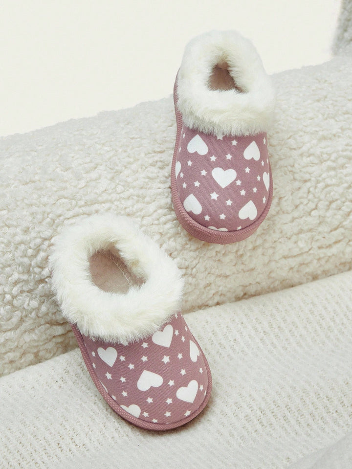 1 Pair Girls' Heart Fashionable Slip-On Warm Lined Winter Slippers
