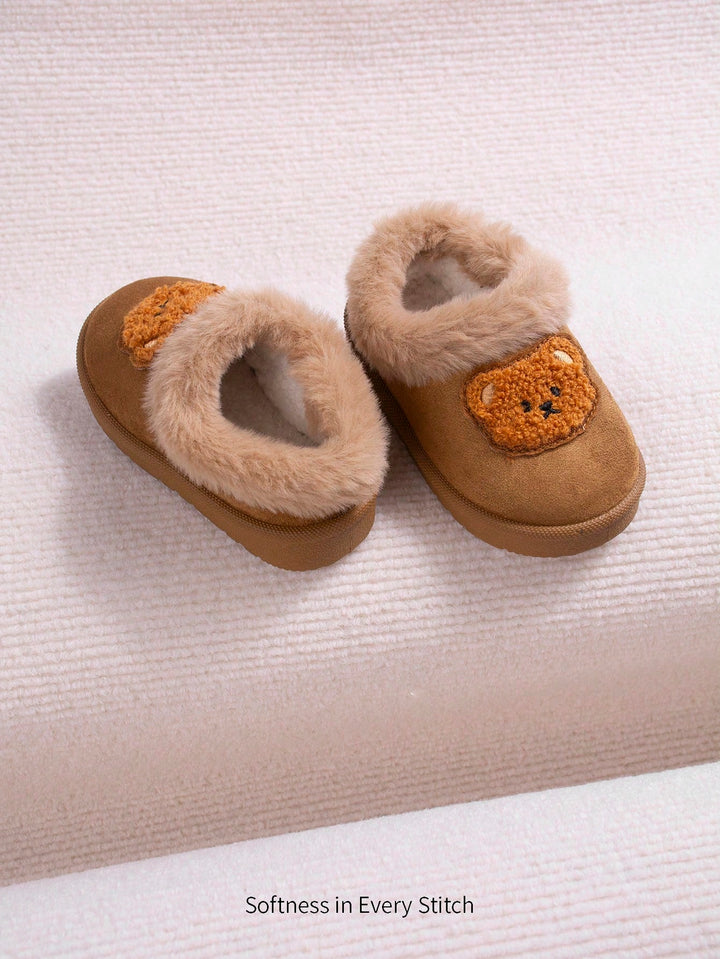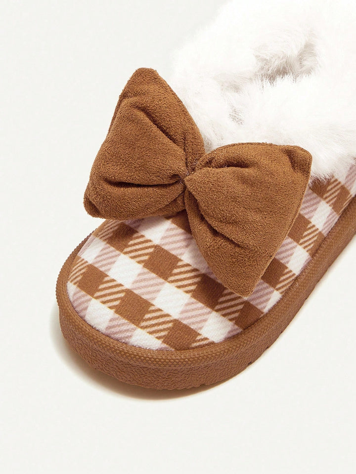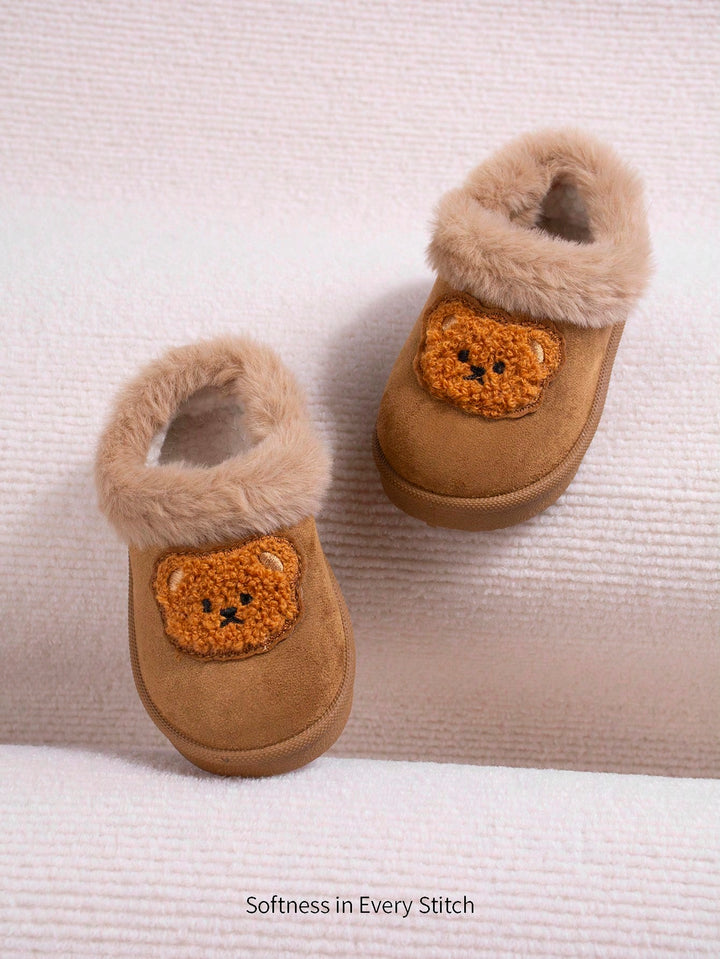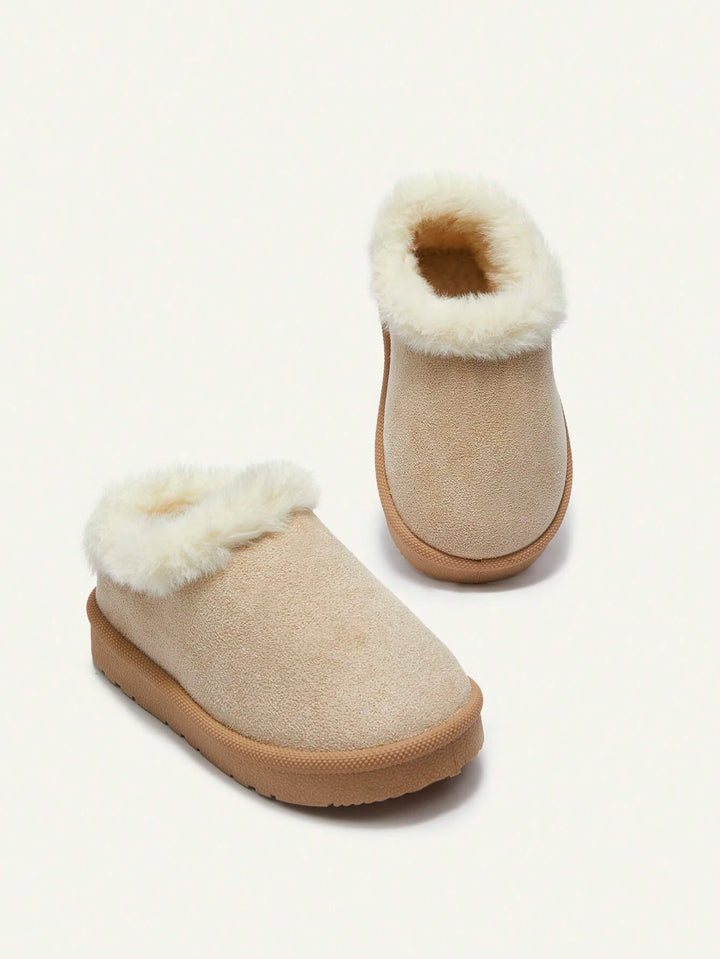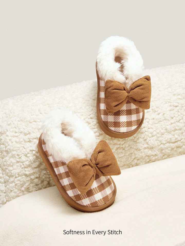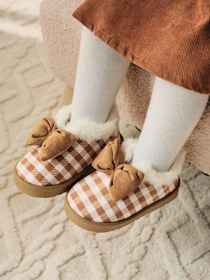 1 Pair Girls' Heart Fashionable Slip-On Warm Lined Winter Slippers