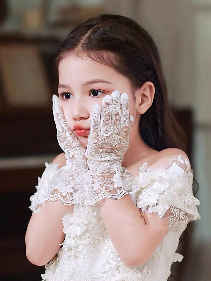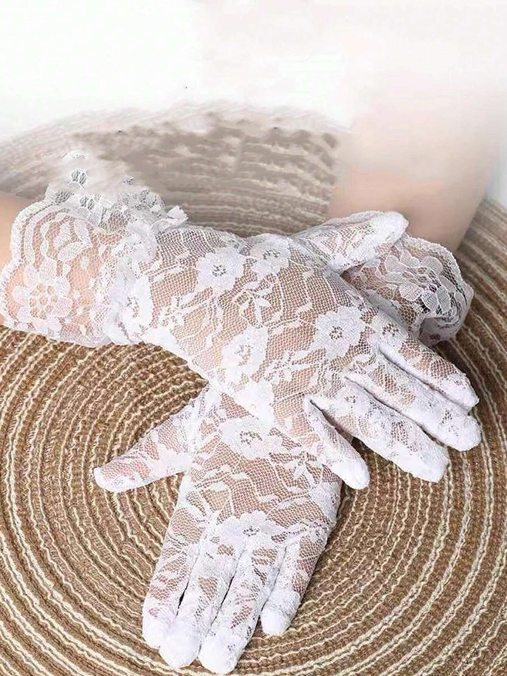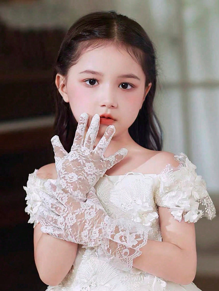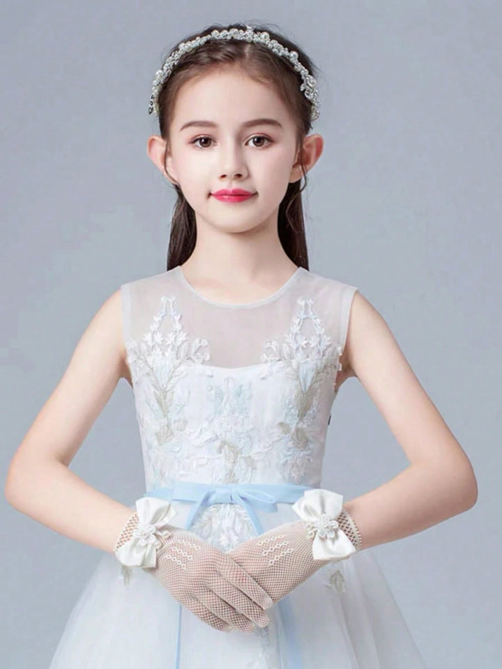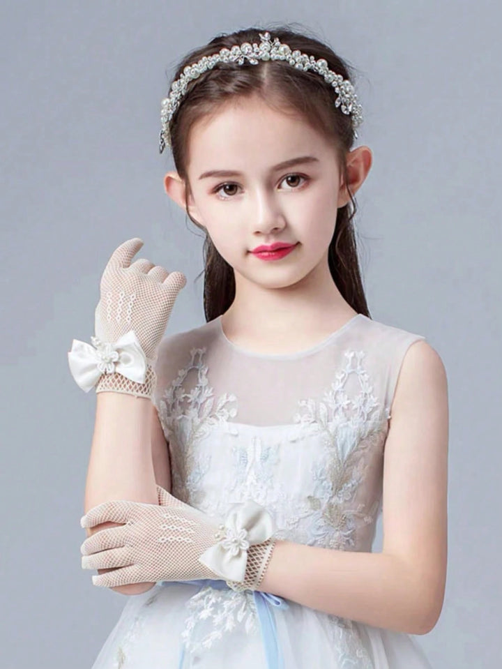 1 Pair Girls Lace Bowknot Breathable Gloves