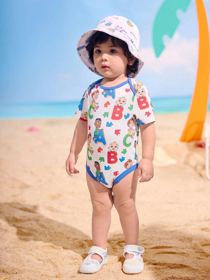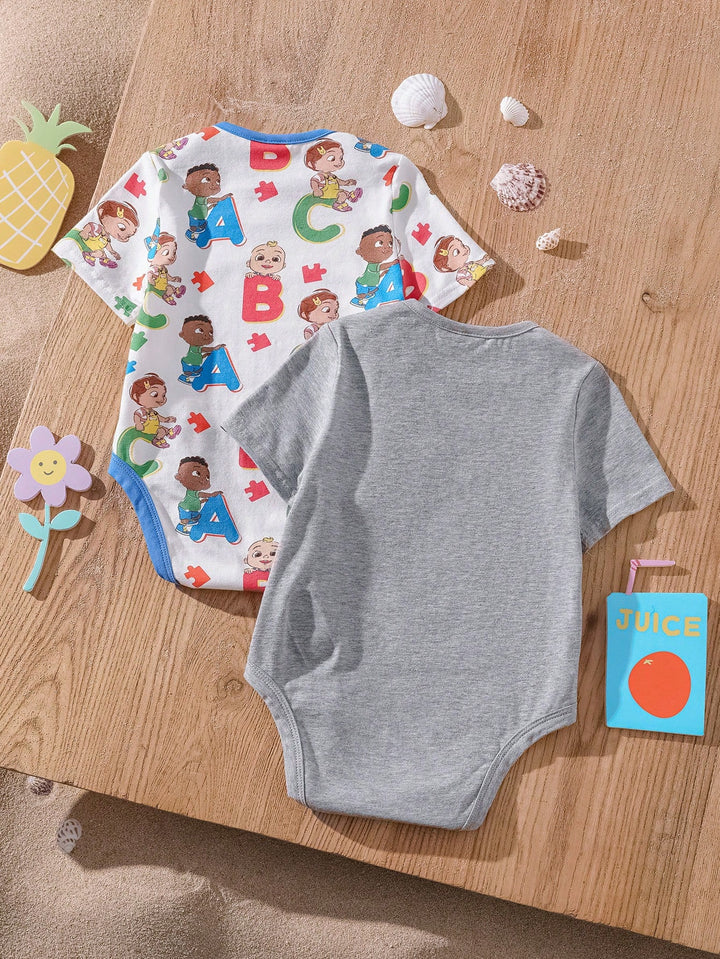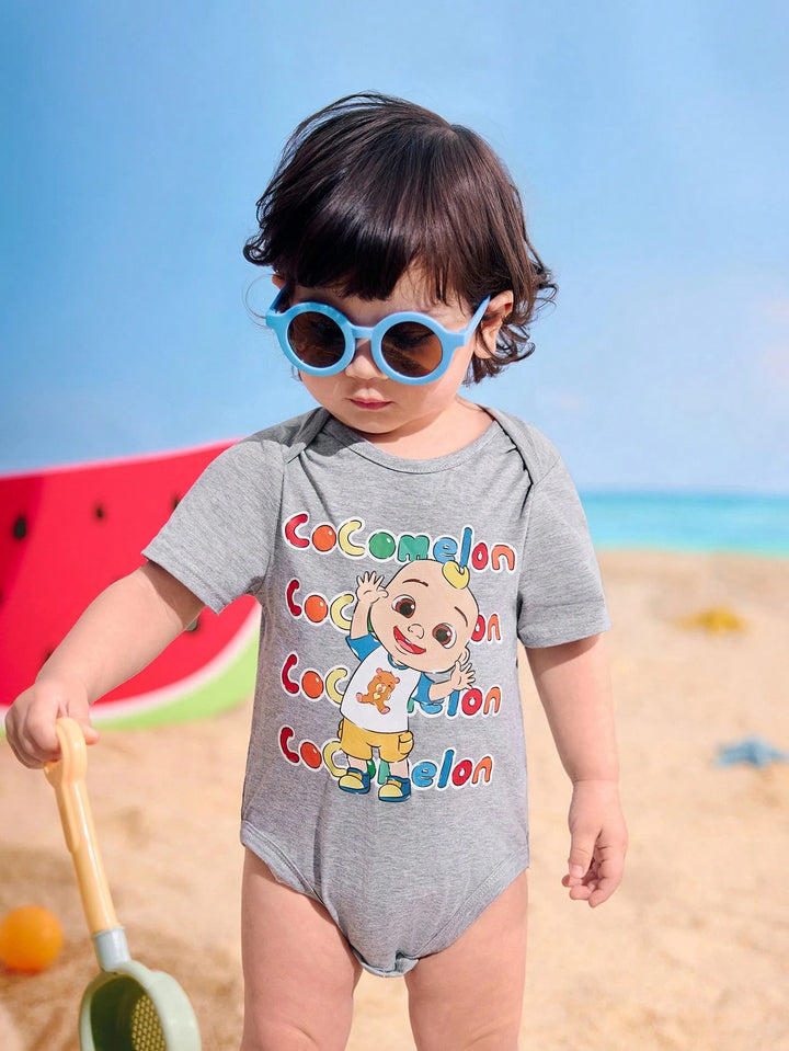 Baby Boy Cartoon Letter Print Grey Comfortable Casual Cute Romper