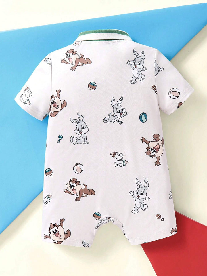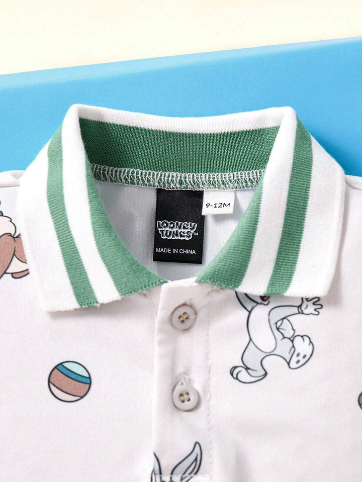 Baby Boy Cartoon Milk Bottle & Ball Print Polo Collar Casual Comfortable Short Sleeve Romper