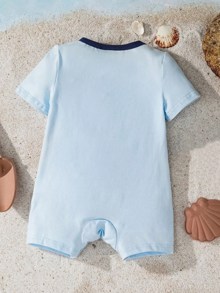 Baby Boy Cartoon Shark Print Light Blue Cute Short Sleeve Romper