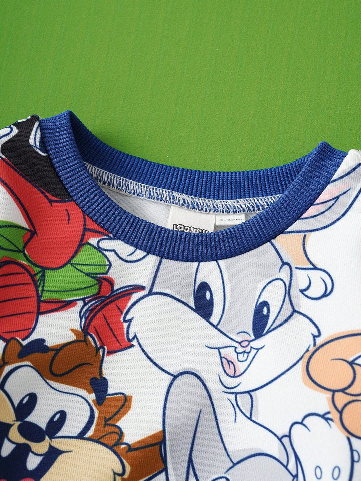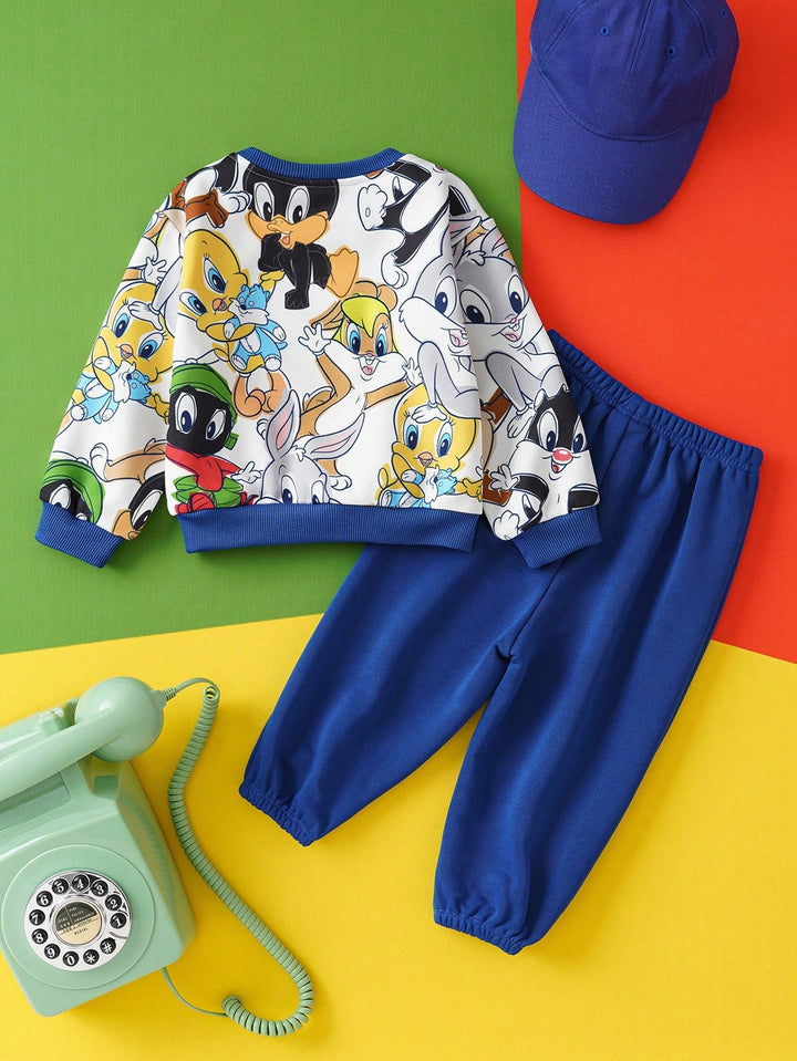 Baby Boy Cool Cartoon Animal Print Color Block Loose Sweatshirt & Sweatpants Set