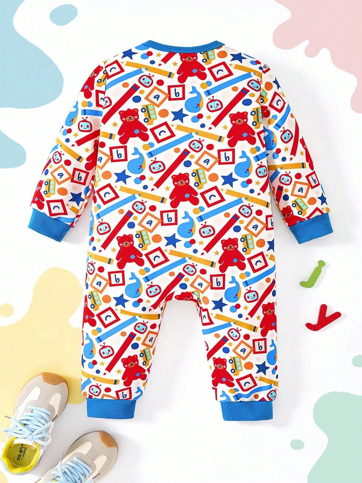 Baby Boy Cute Cartoon Bear Red & White Pattern Long Sleeve Romper