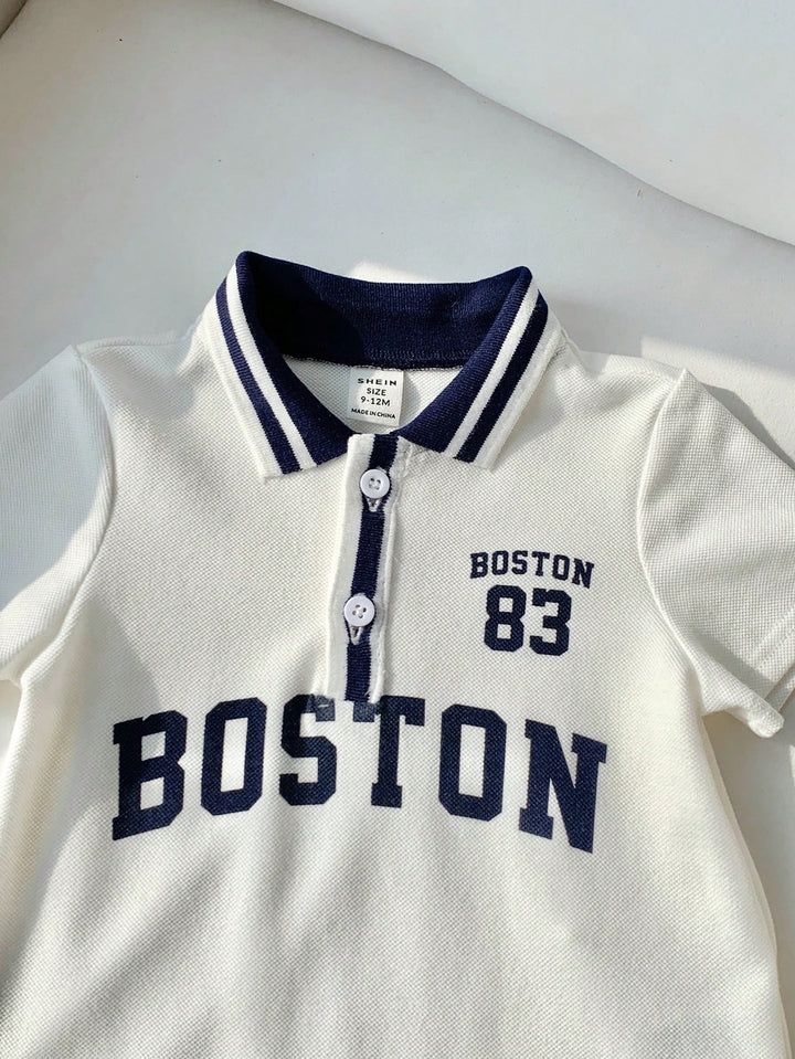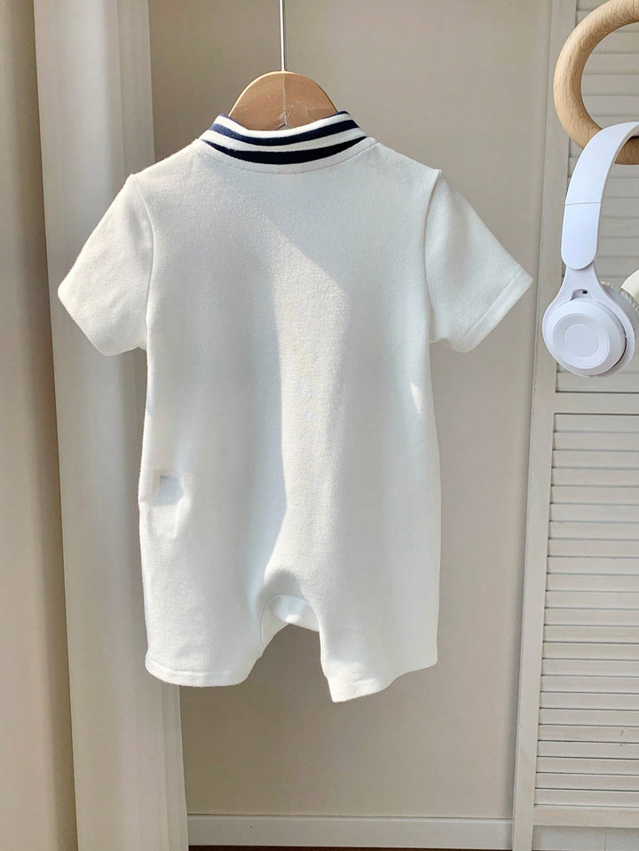Baby Boy Cute Summer Casual Knit Letter Pattern Color Block Romper