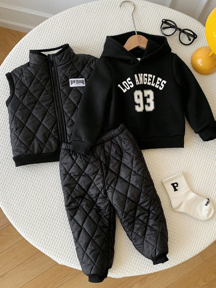 Baby Boy Fleece Lined Hoodie, Sweatpants, And Padded Vest Jacket