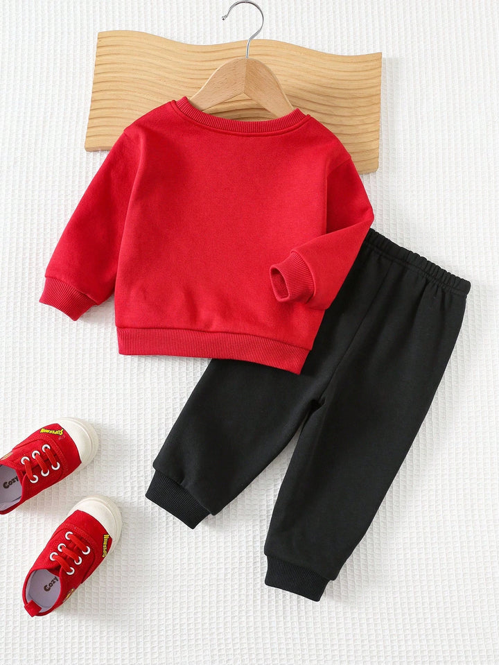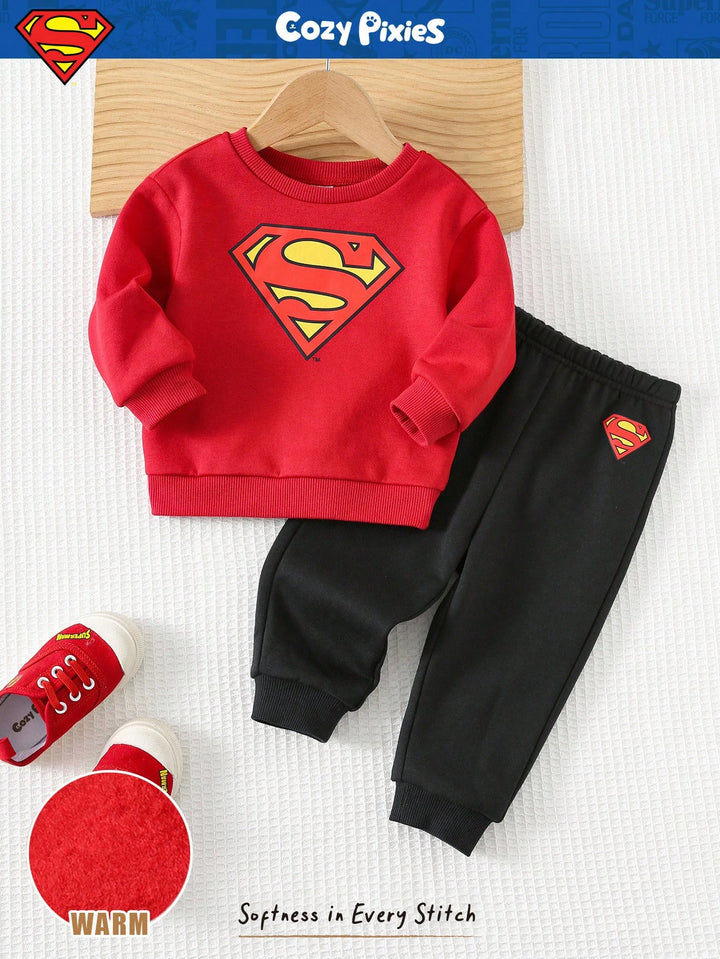 Baby Boy Superhero Pattern Knit Soft Crew Neck Long Sleeve Pullover Sweatshirt And Elastic Waist Ankle Length Pants