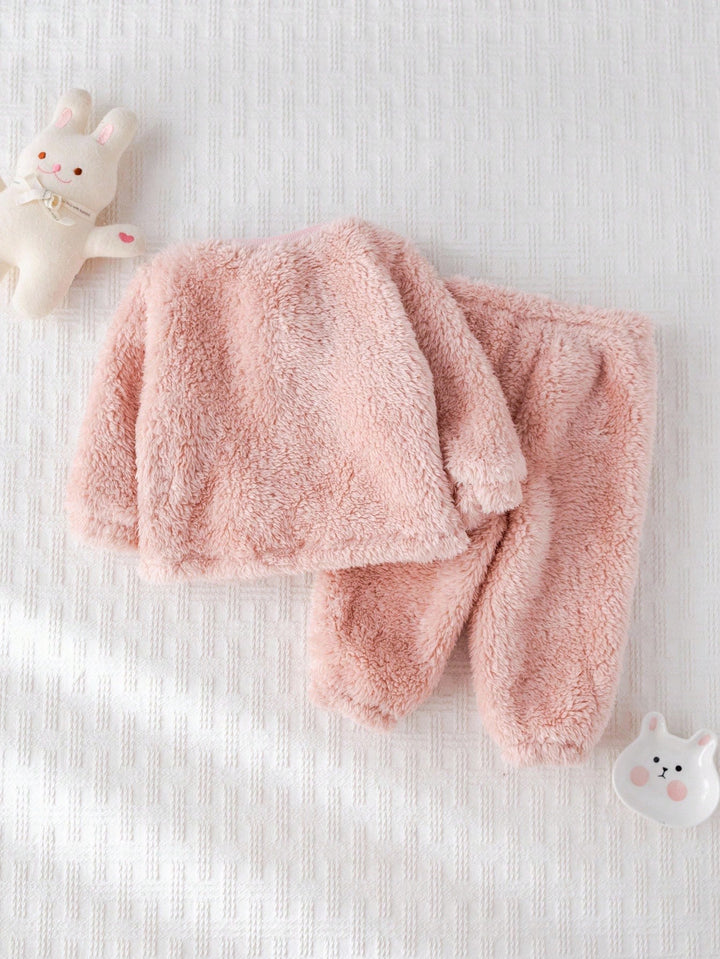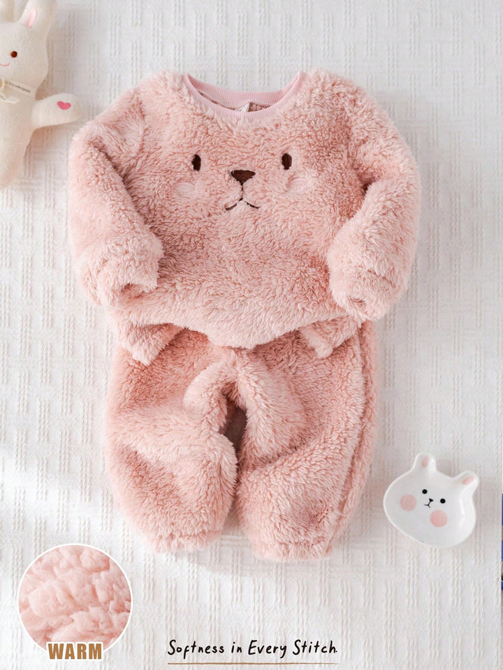 Baby Girl Cartoon Cat Pattern Knitted Soft Crew Neck Long Sleeve Pullover Sweatshirt And Elastic Waist Pants