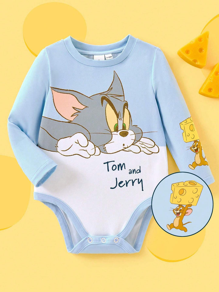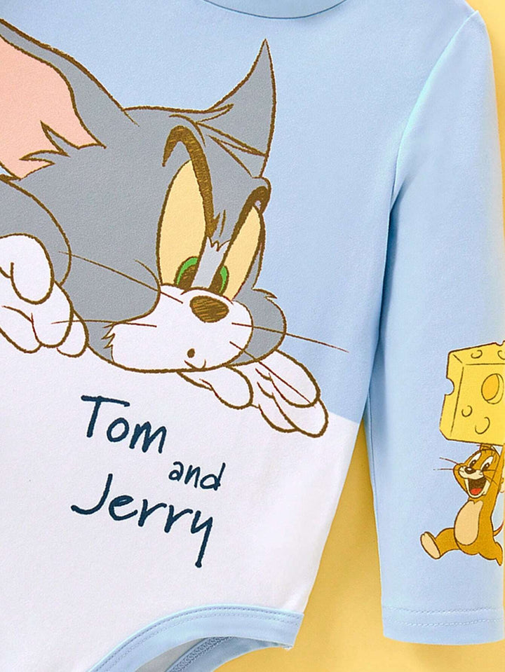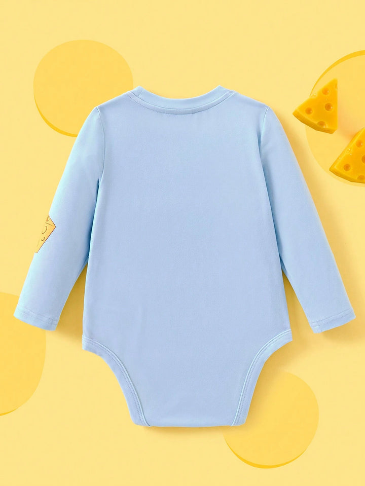 Baby Girl Cartoon Print Cute Blue Long Sleeve Bodysuit