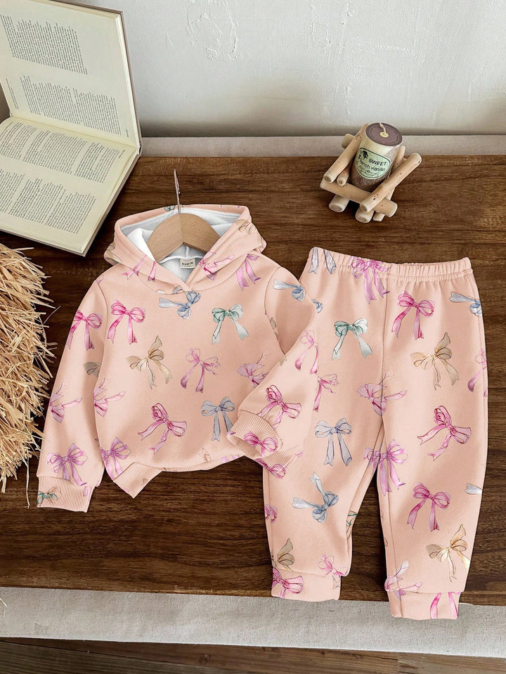 Baby Girl Casual Loose Comfortable Soft Knit Hooded Pullover & Pants