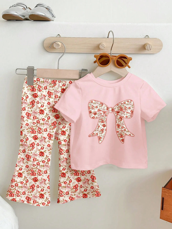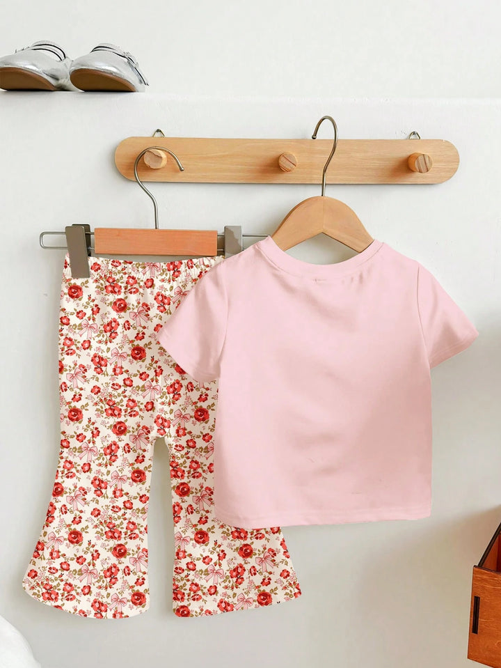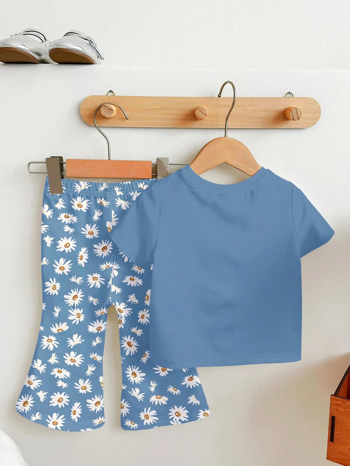 Baby Girl Casual Simple Short Sleeve Round Neck Long Pants