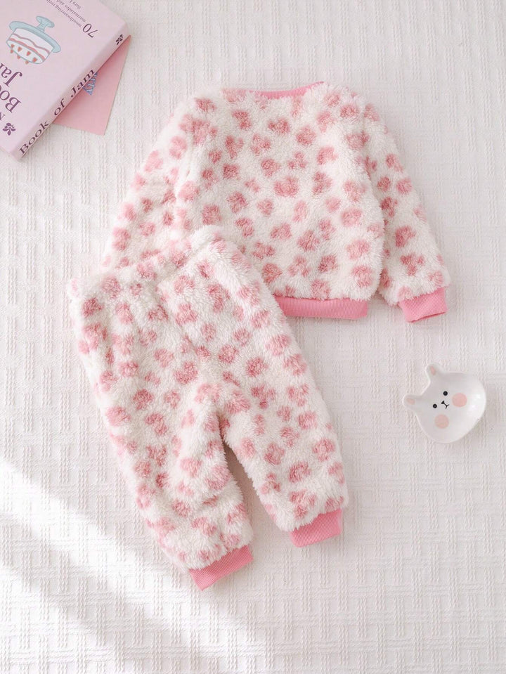 Baby Girl Leopard Print Crew Neck Long Sleeve Hoodie & Elastic Cuff Pants Set