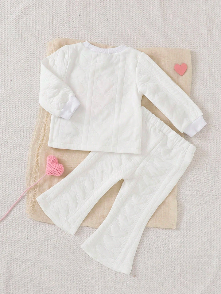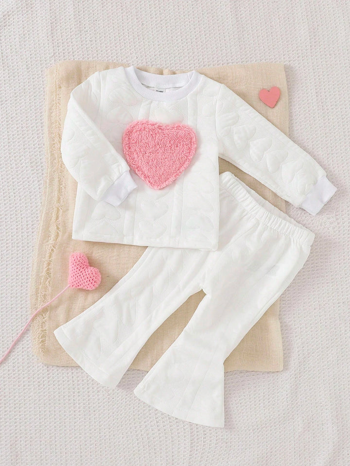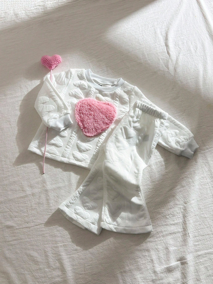 Baby Girls' Fashion Cute 3D Heart Decor Long Sleeve Top And Pants