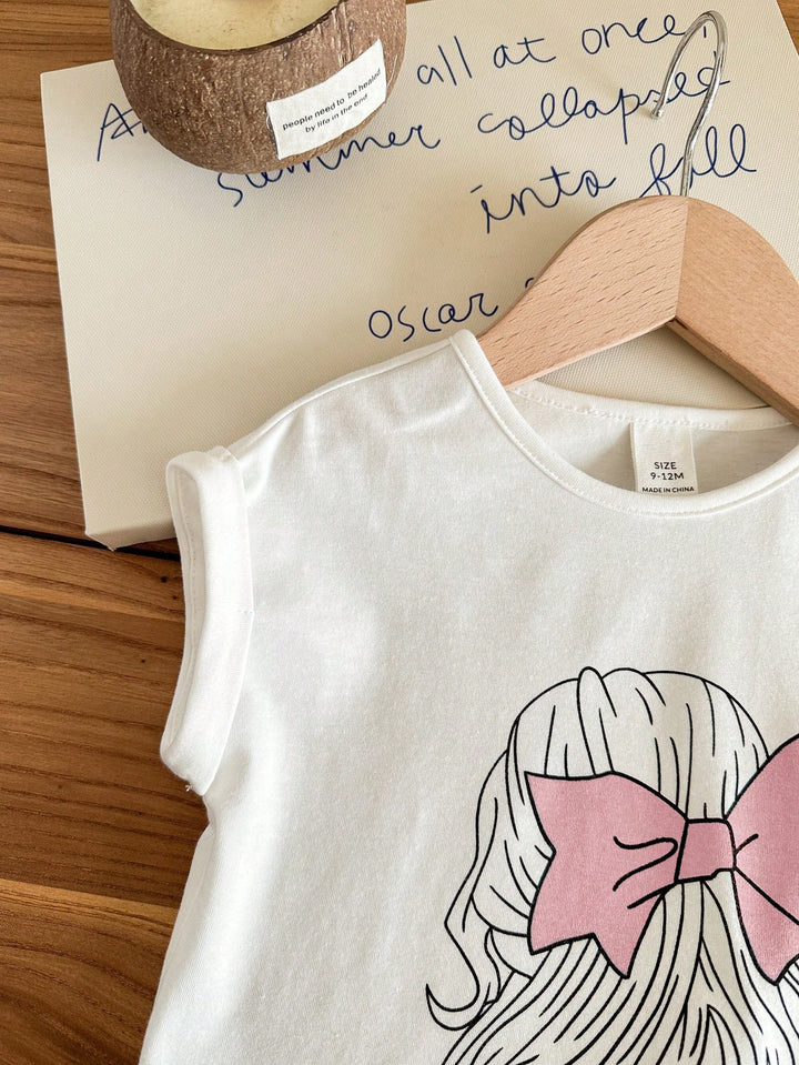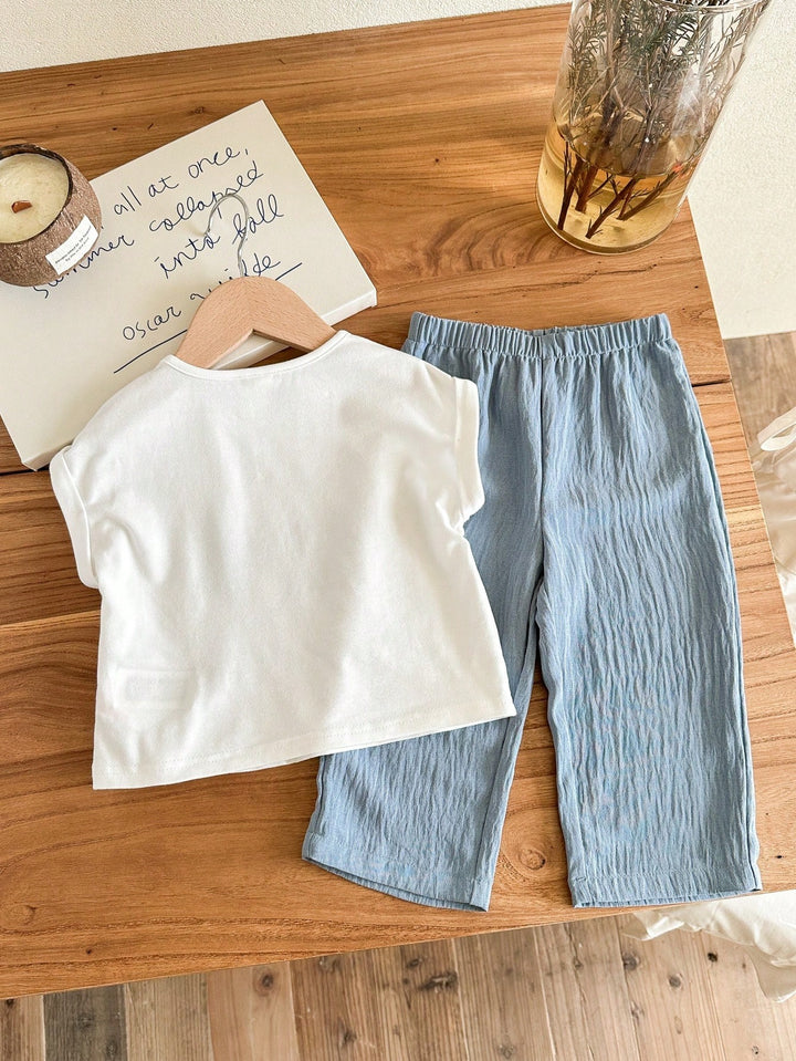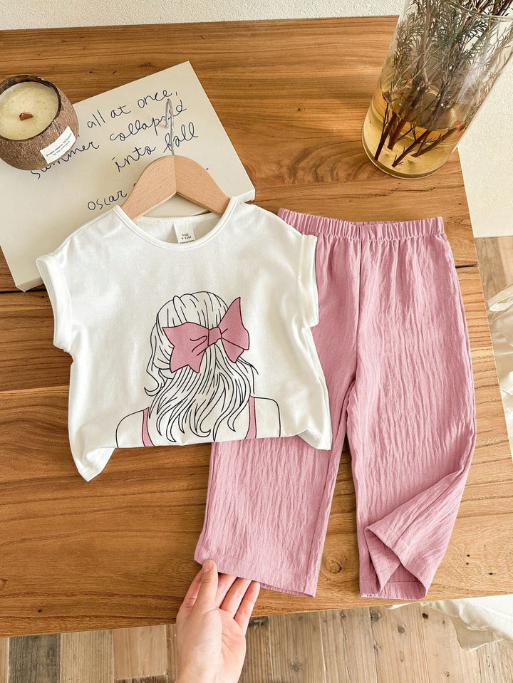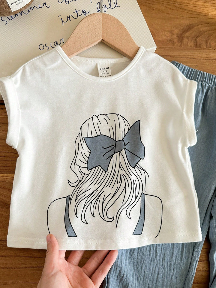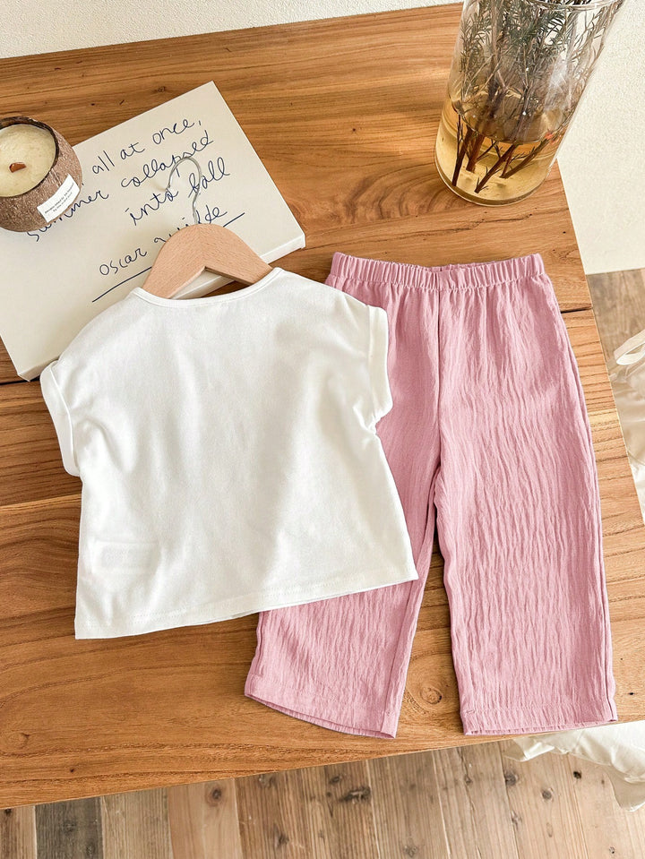 Babygirl Cute Graphic Short Sleeve T-Shirt With Elastic Waist Pants Set