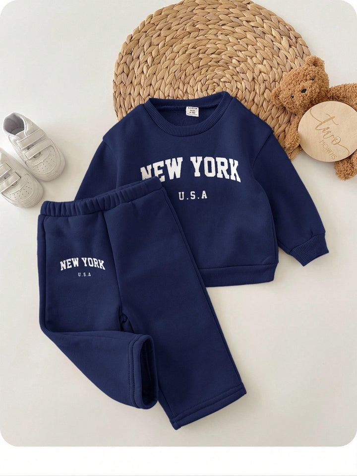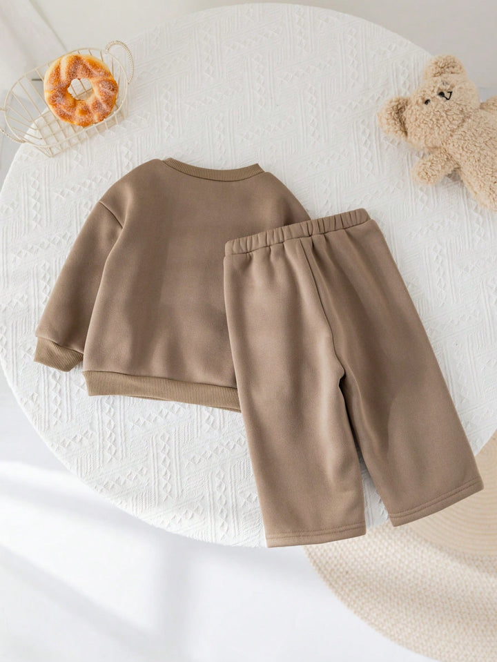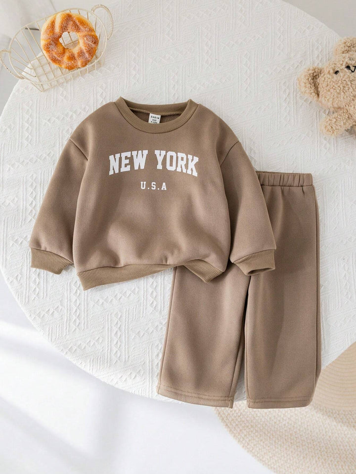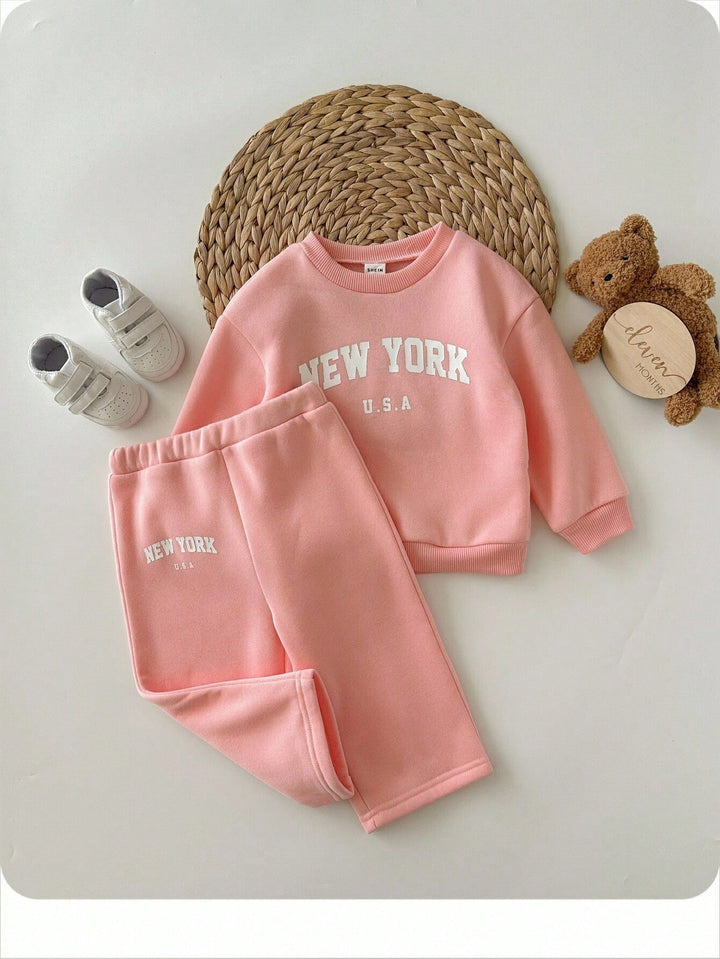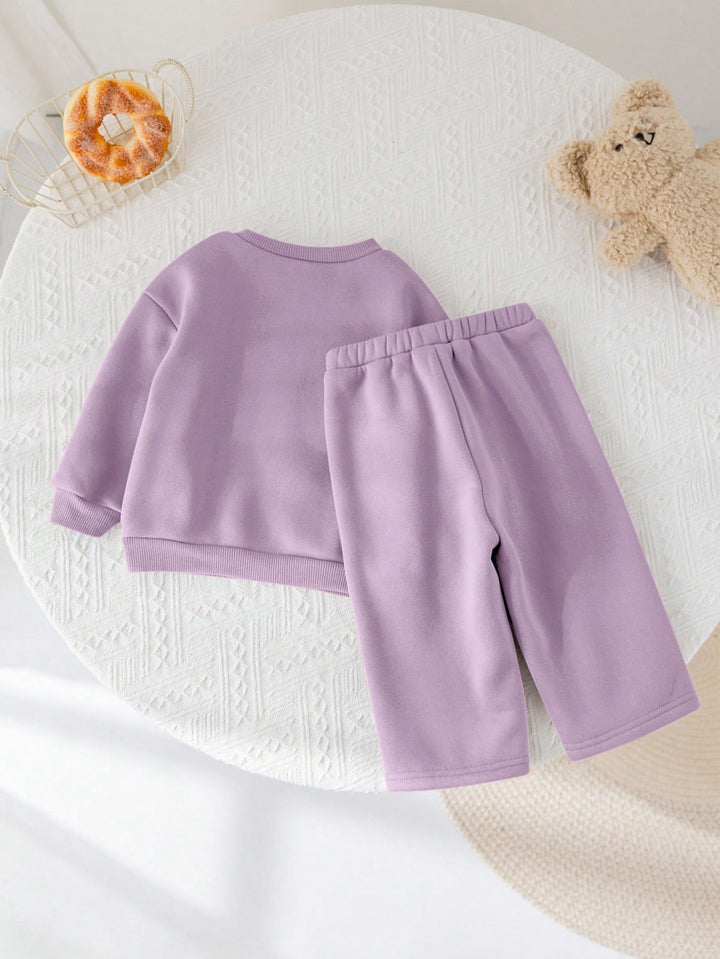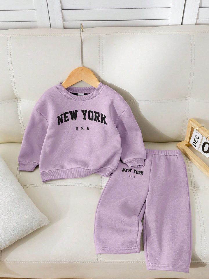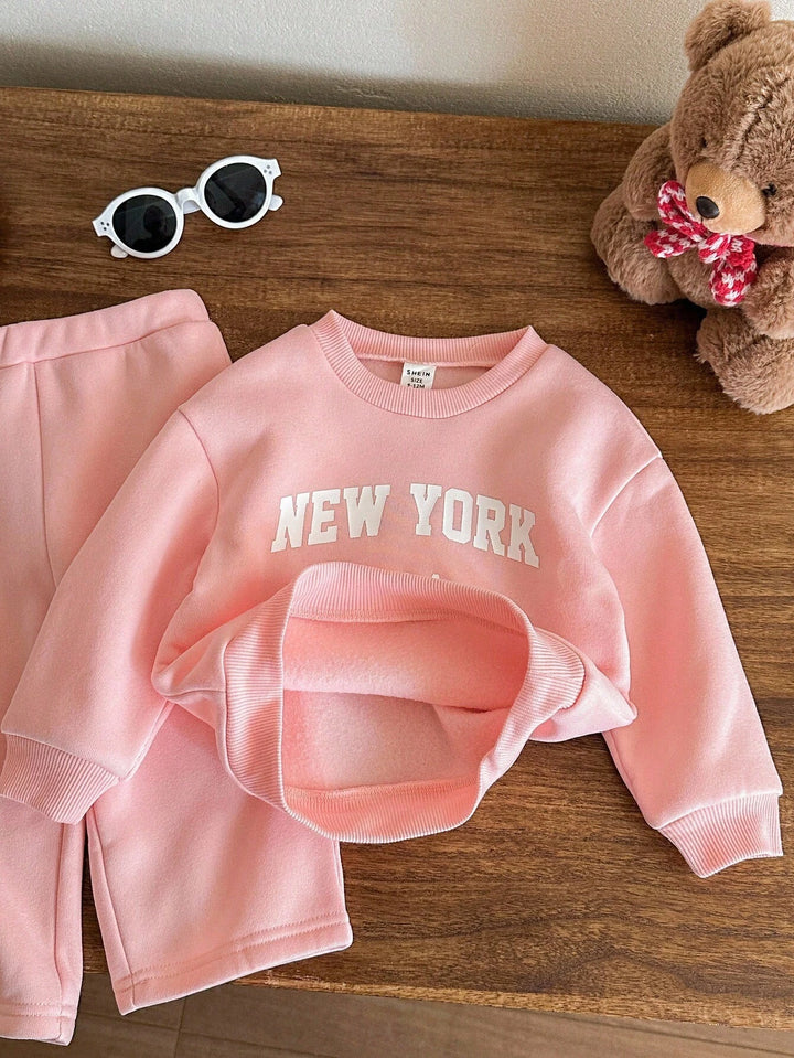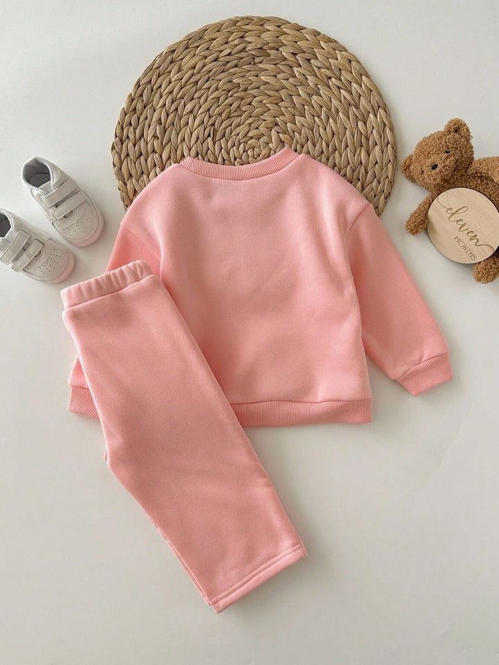 Babygirl Loose Casual Letter Print Long Sleeve Crew Neck Sweatshirt And Sweatpants