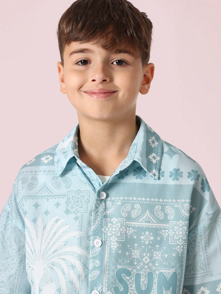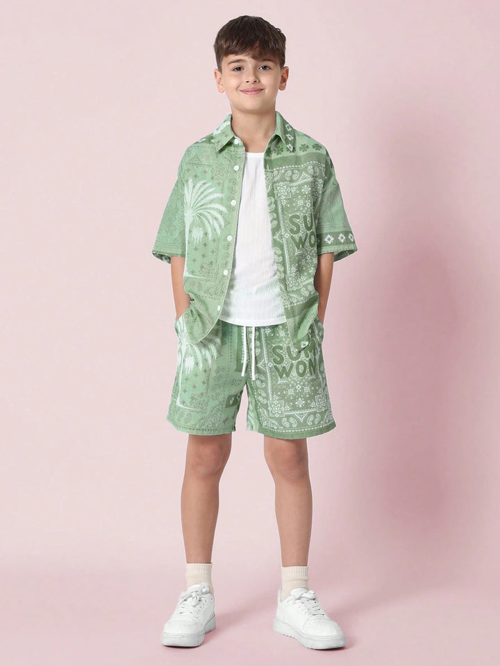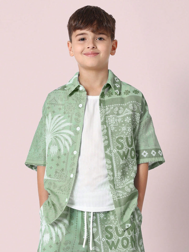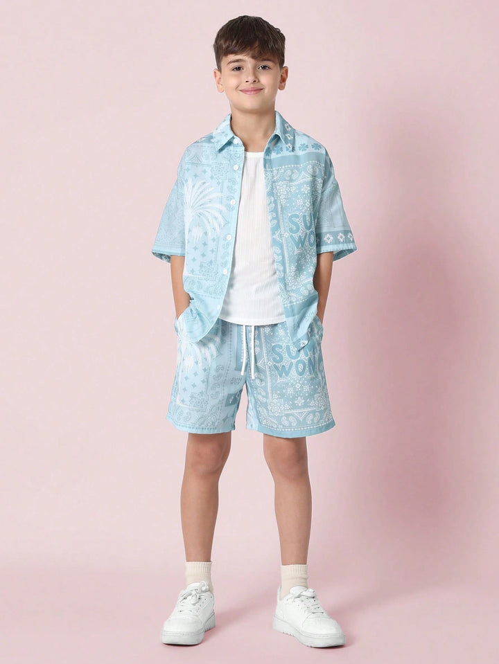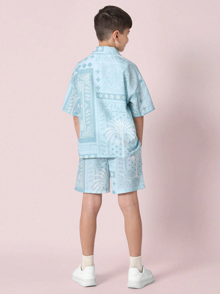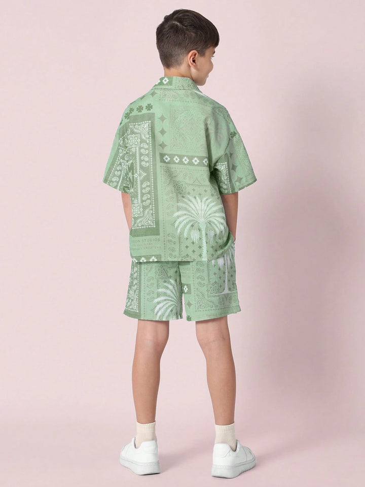 Bandana Print Short Sleeve Button Down Coordinated Holiday Beach Resort Palm Tree Vacation Casual Set