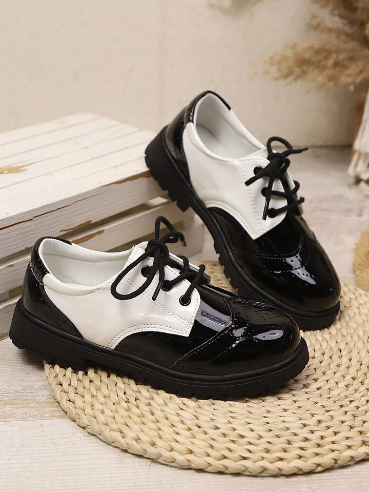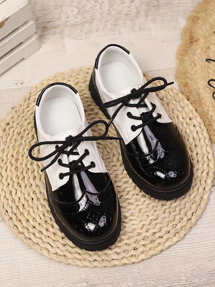 Boys' Fashion Lace-Up British Style PU Leather Non-Slip Flat Dress Shoes