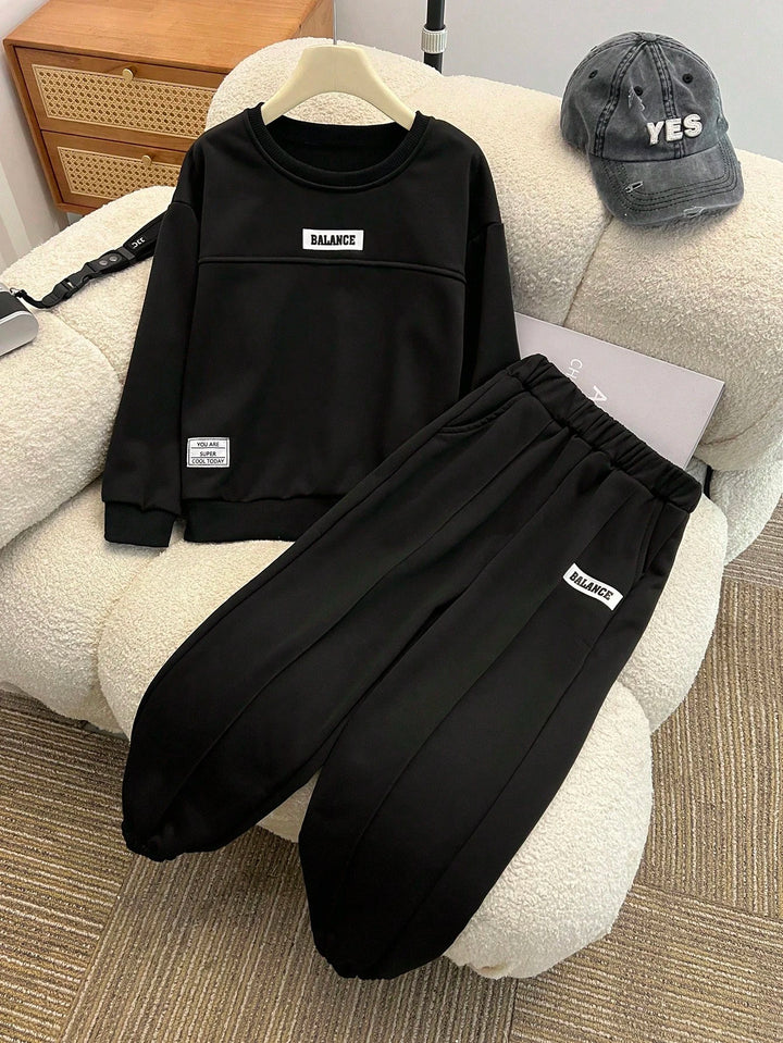 Boys Graphic Print Crew Neck Sweatshirt And Sweatpants Set
