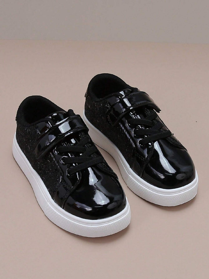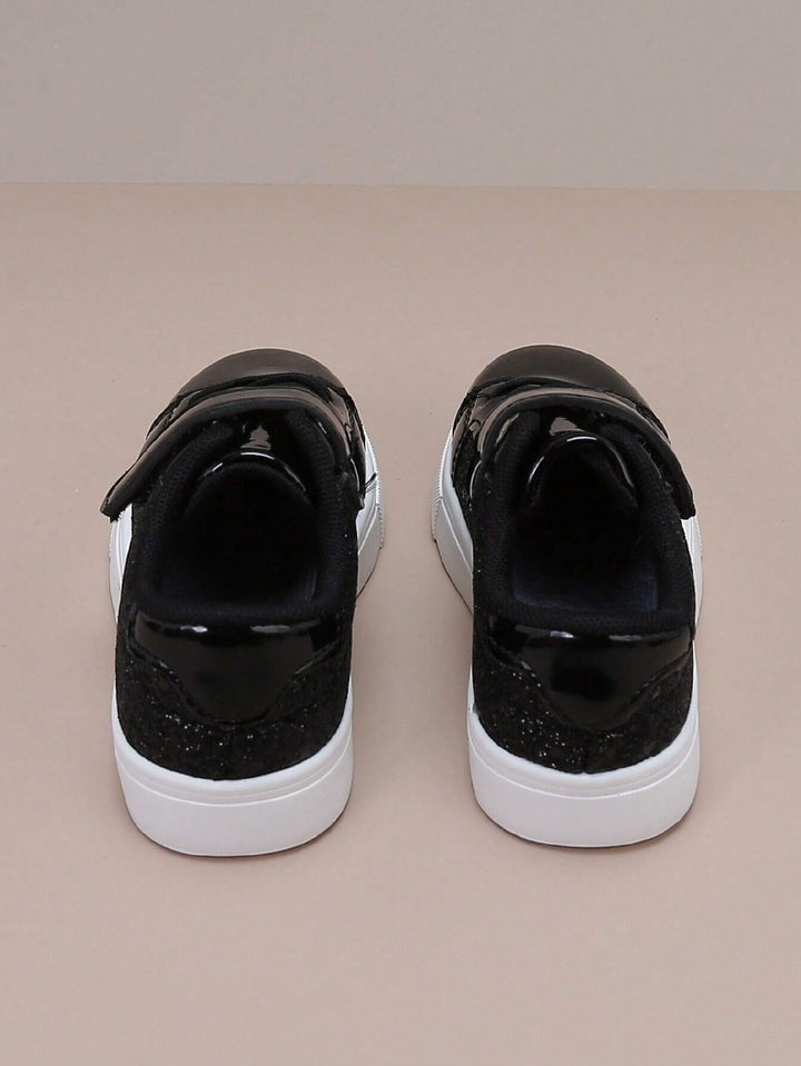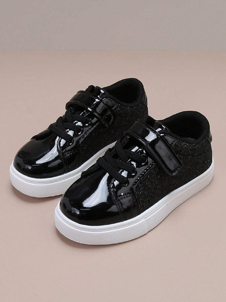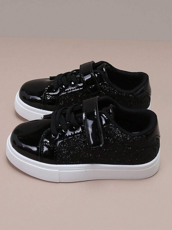 Children's Casual Black Sports Shoes With Sequin Surface And Flat Sole