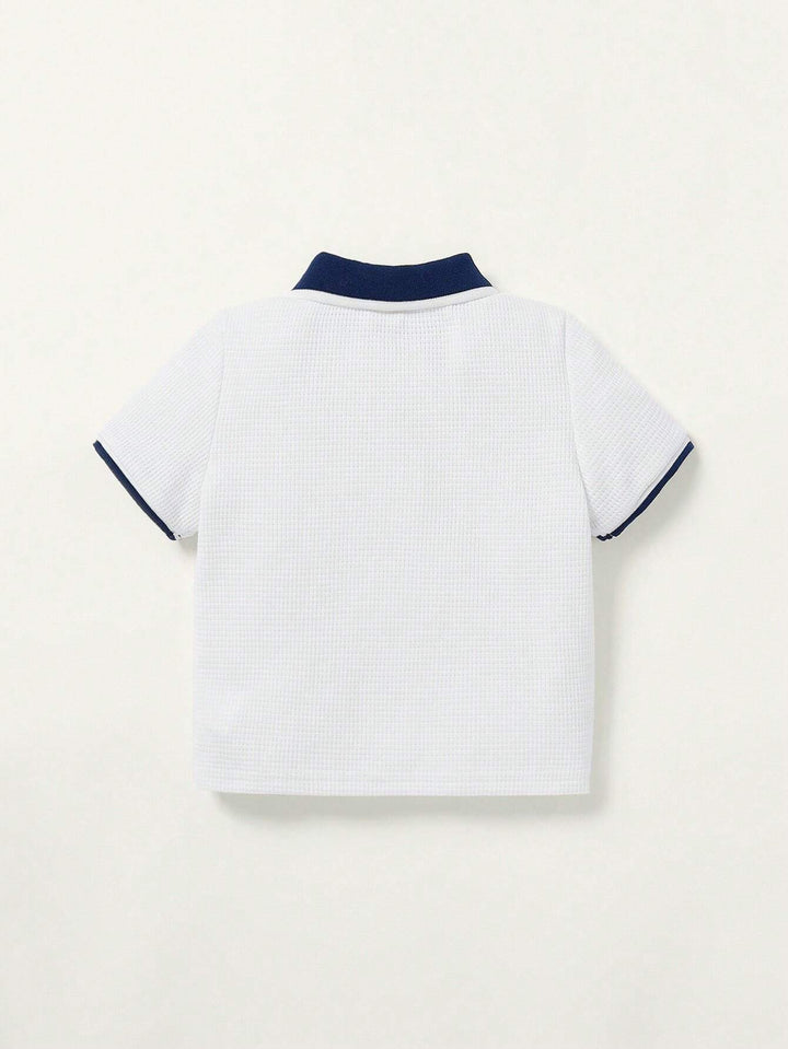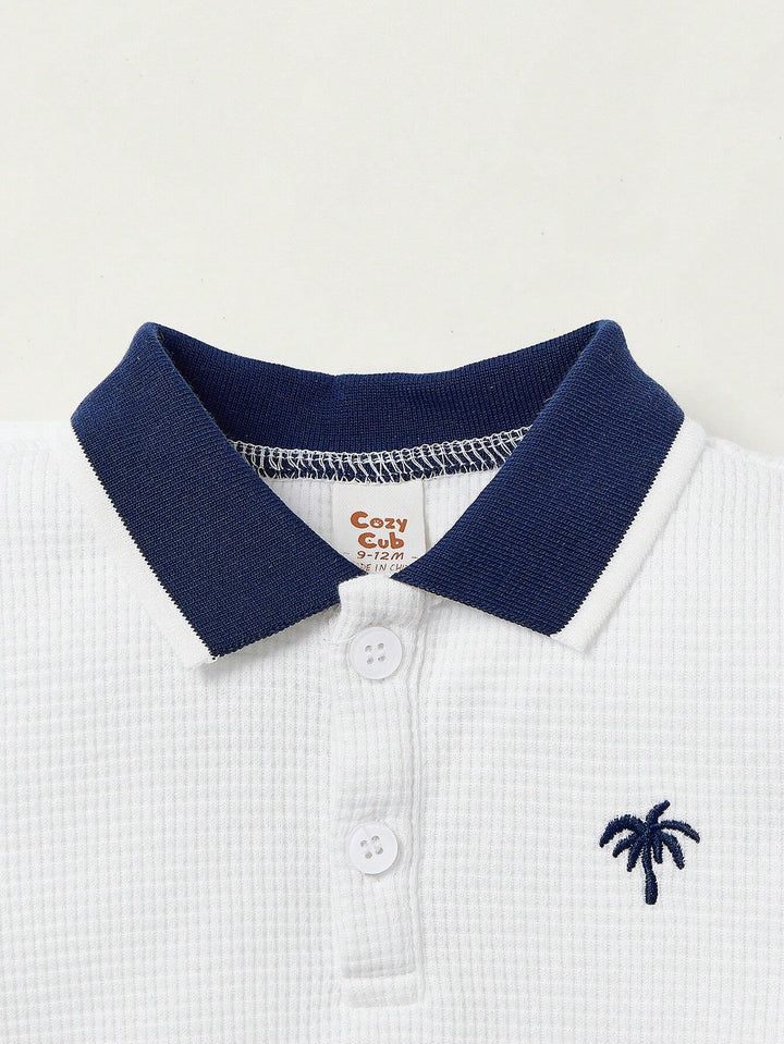 Cozy Pixies Baby Boy Coconut Tree Embroidery Contrast Collar Top And Solid Color Shorts