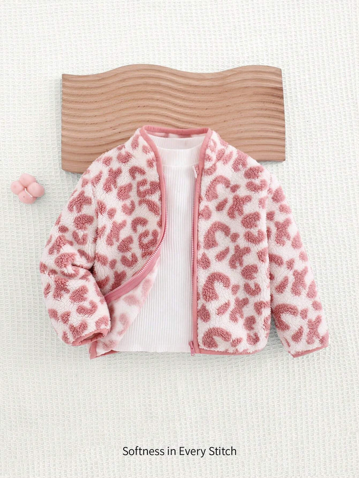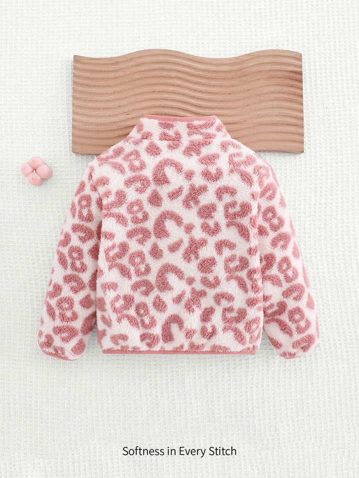 Cozy Pixies Baby Girl Casual Versatile White Floral Print Stand Collar Long Sleeve Cardigan