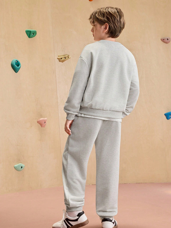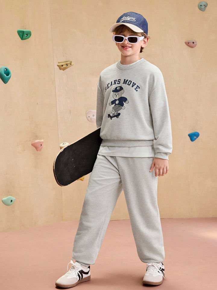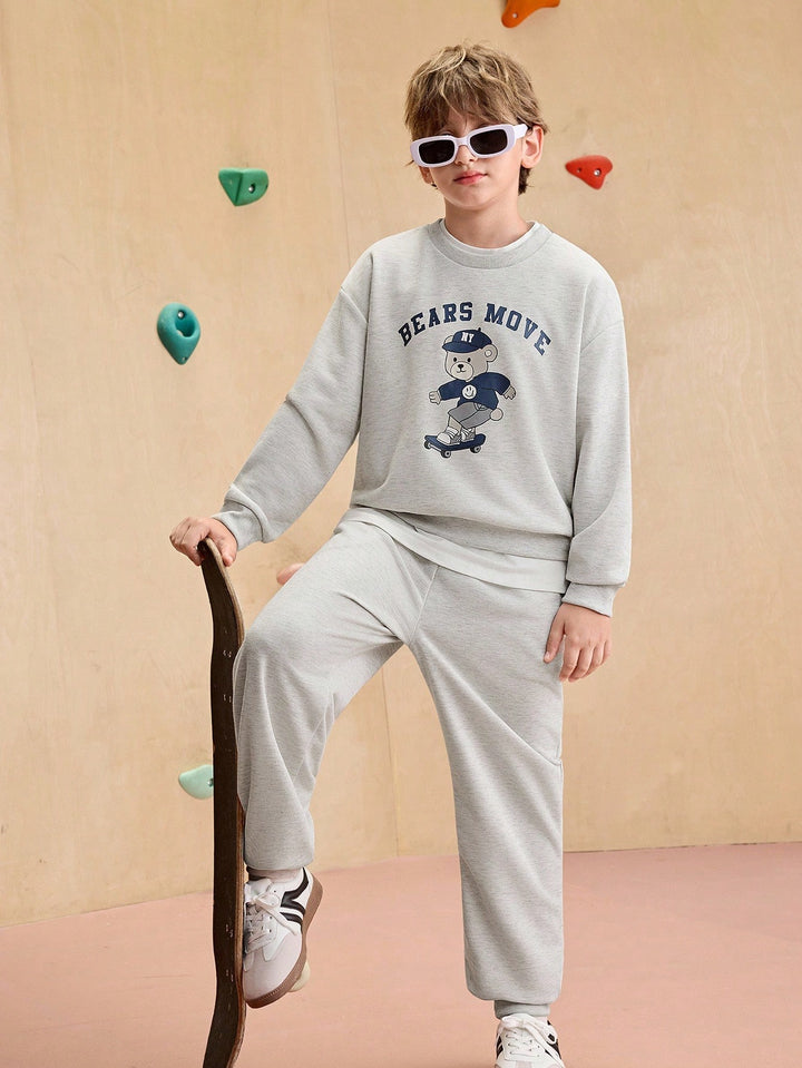 Crew Neck Long Sleeve Sweatshirt With Funny Skateboard Bear Graphic Print Paired With Relaxed Fit Sweatpants