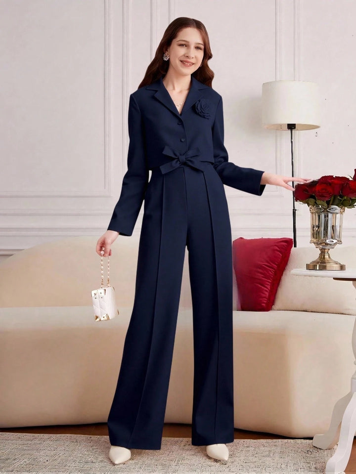 Elegant Casual Office Wear Knitted Vest & Short Pants With Belt