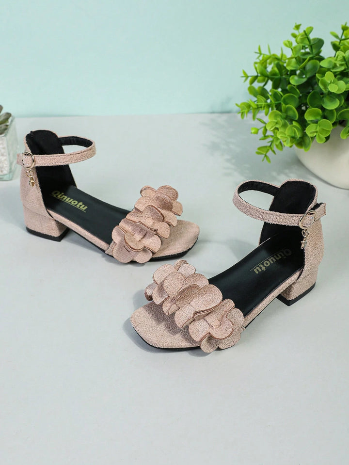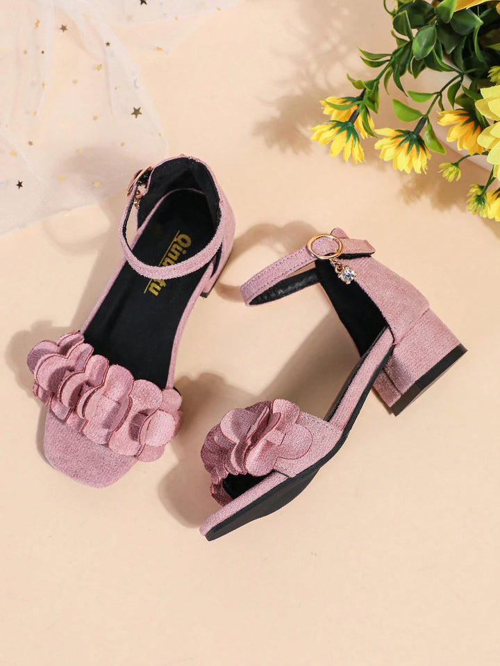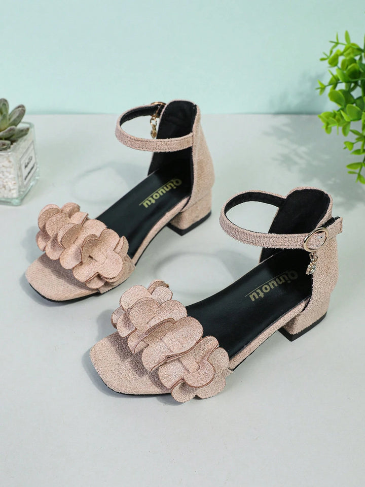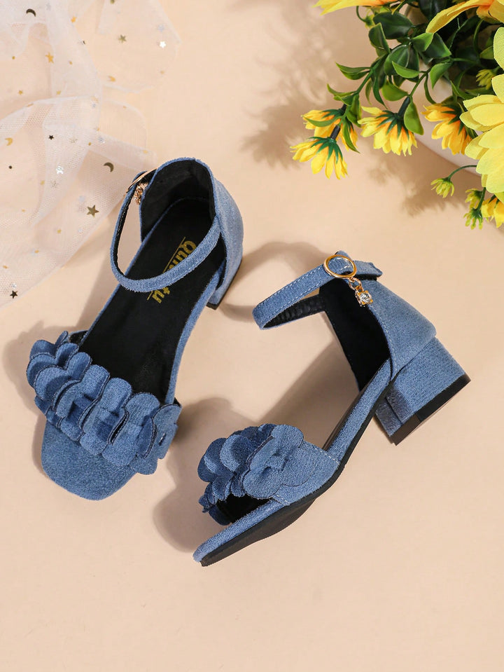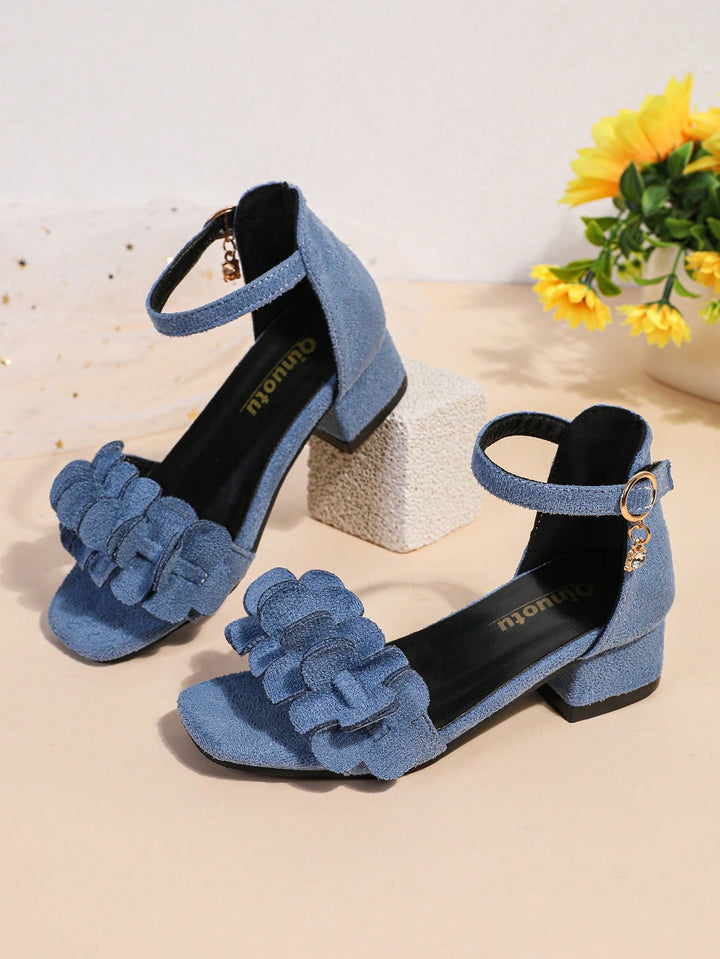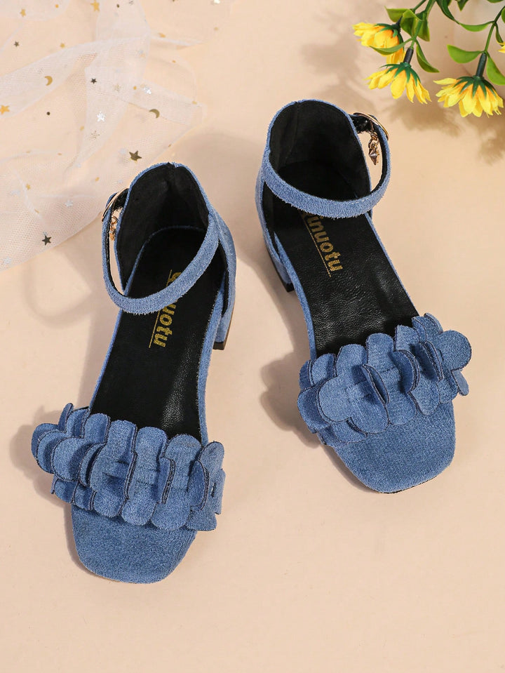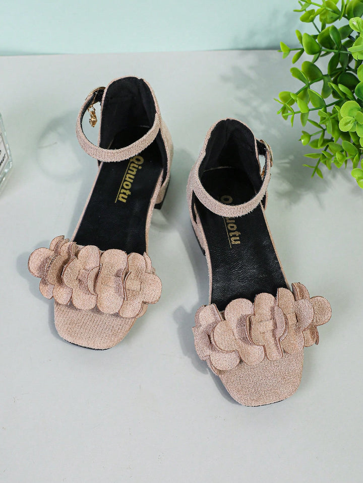Fashion High Heel Sandals Princess Shoes With Strap Floral Hook Loop Fastener