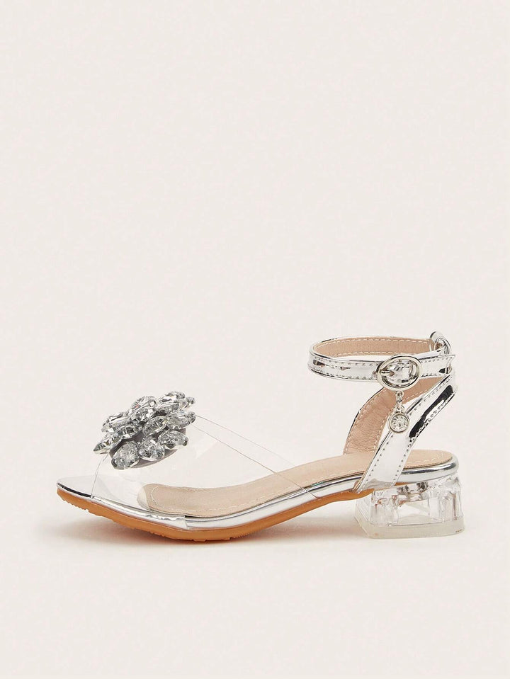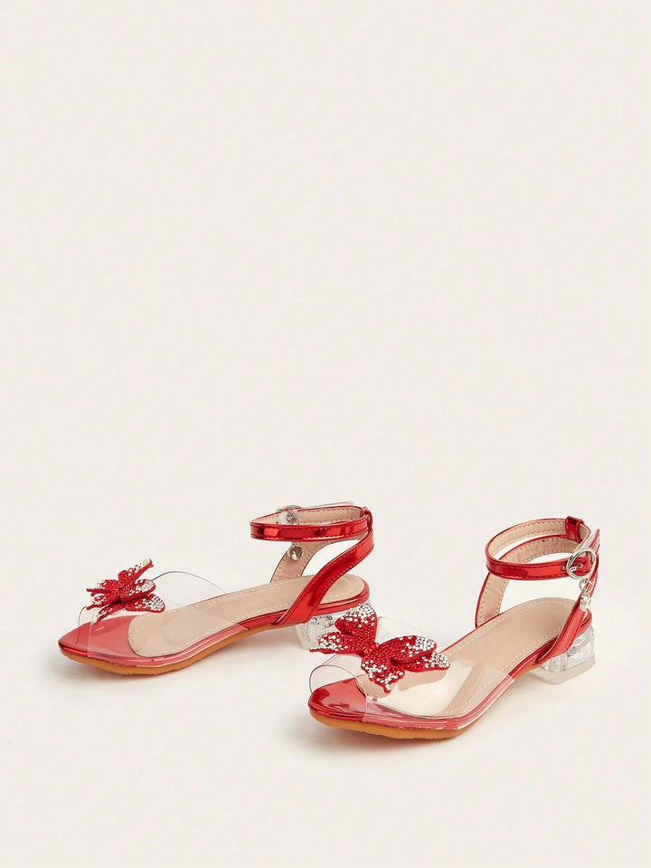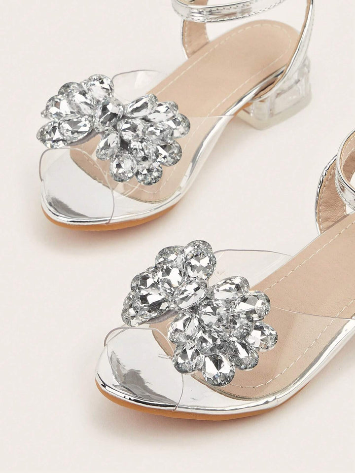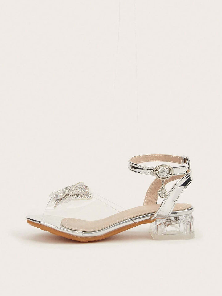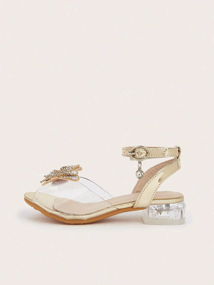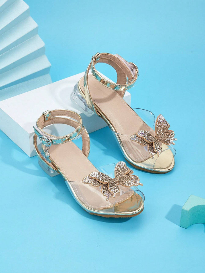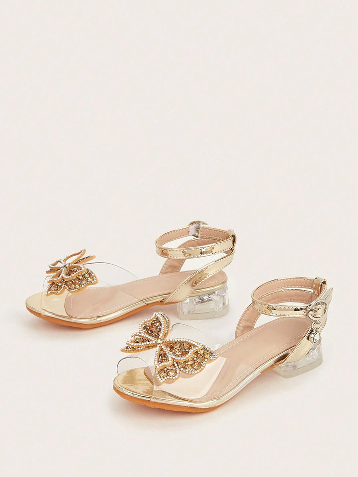 Girls' Chunky Heel Silver Glitter Butterfly Crystal Sandals