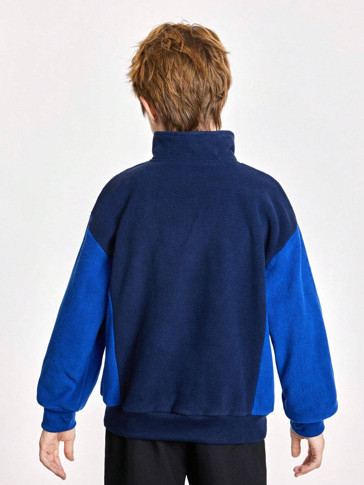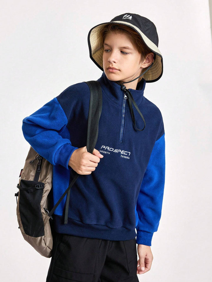 Half-Zip Stand Collar Sherpa Sweatshirt With Letter Embroidery