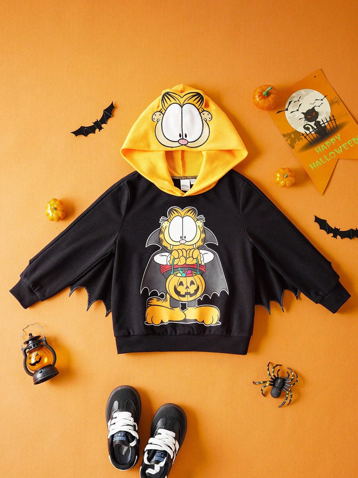 Halloween Cartoon Pattern Contrast Color Embroidered Hooded Bat Shaped Cape Sweatshirt