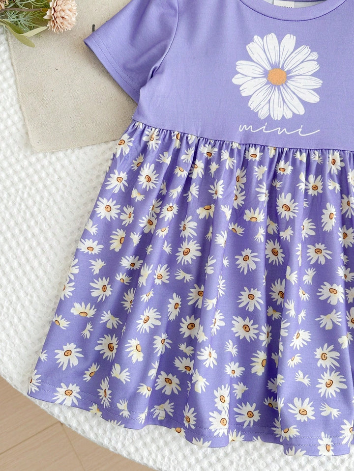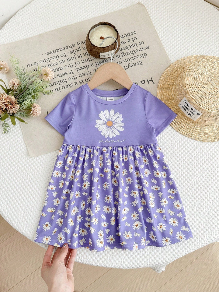 LMoss Baby Girl Ditsy Floral Knitted Fitted Casual Dress