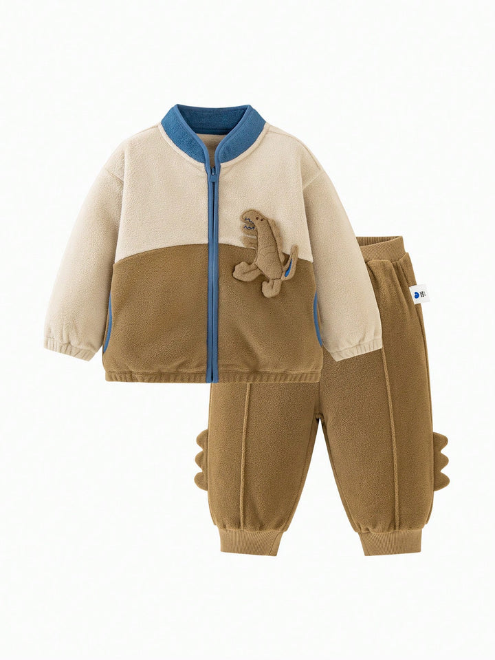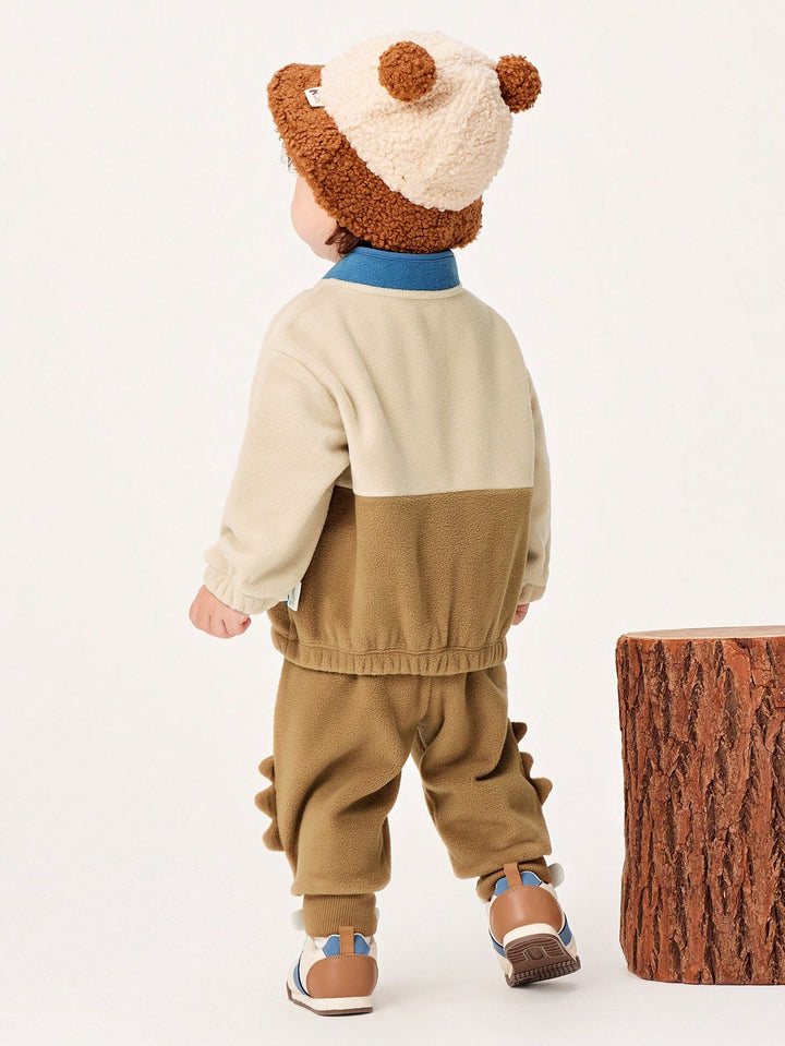 mini bala Boys Baby Cartoon Graphic 3D Patched Zipper Hoodie & Sweatpants