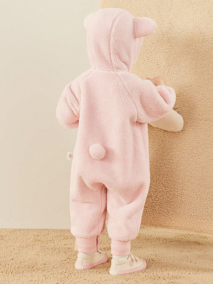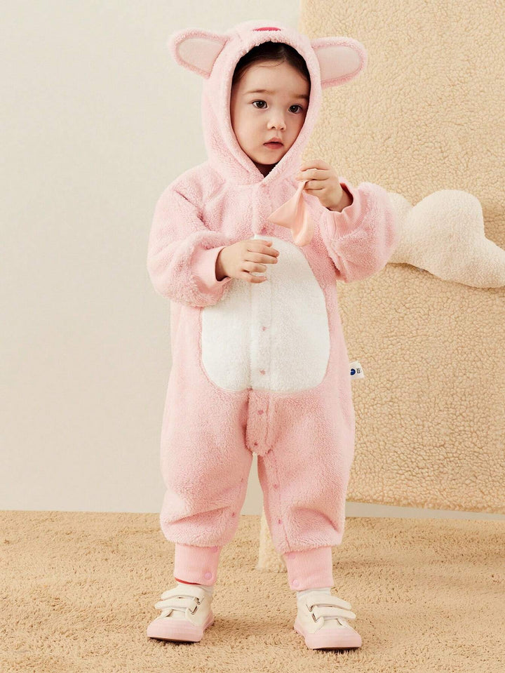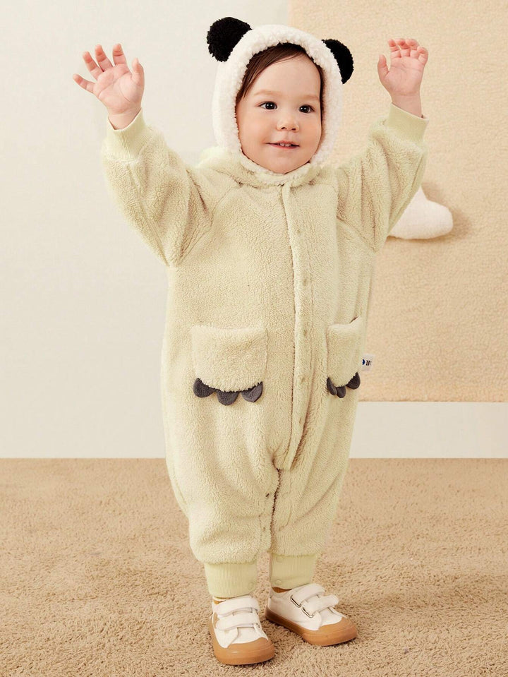 mini bala Boys' & Girls' Double-Sided Plush Hooded Jumpsuit
