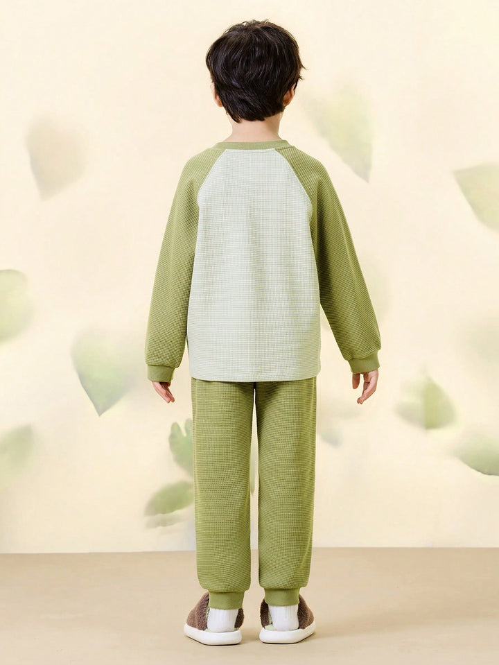 mini bala Kids Cotton Waffle Plant-Based Pajamas Soft Long Sleeve Set