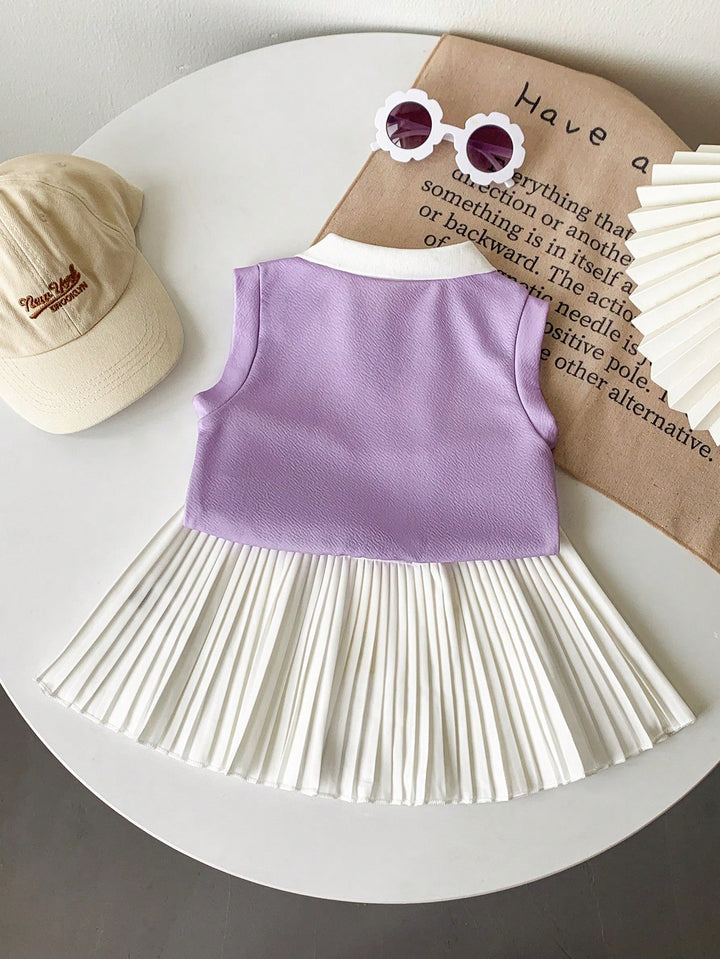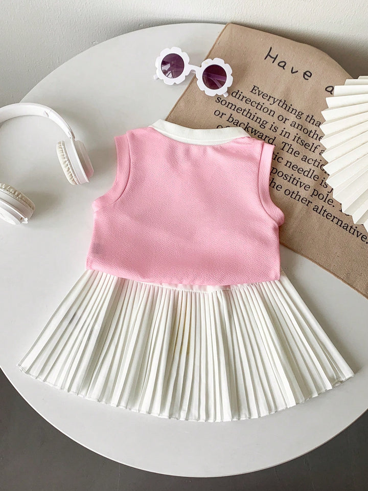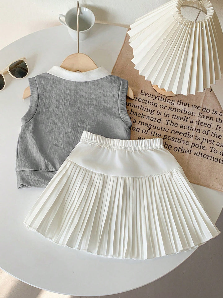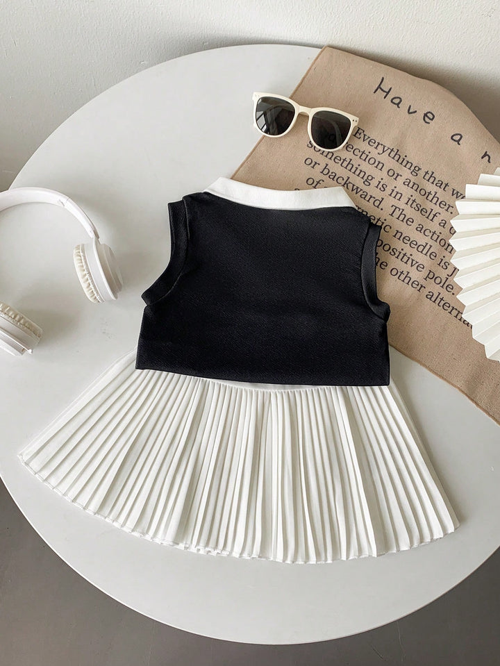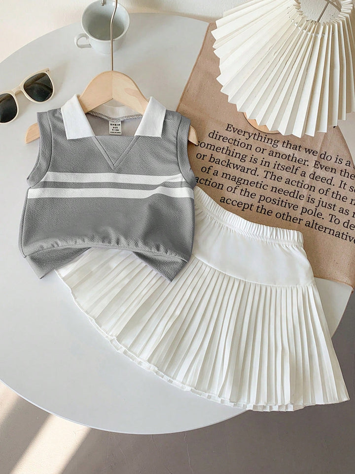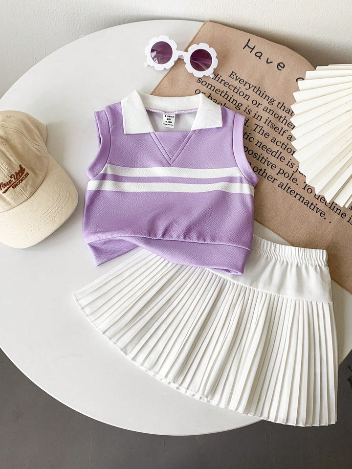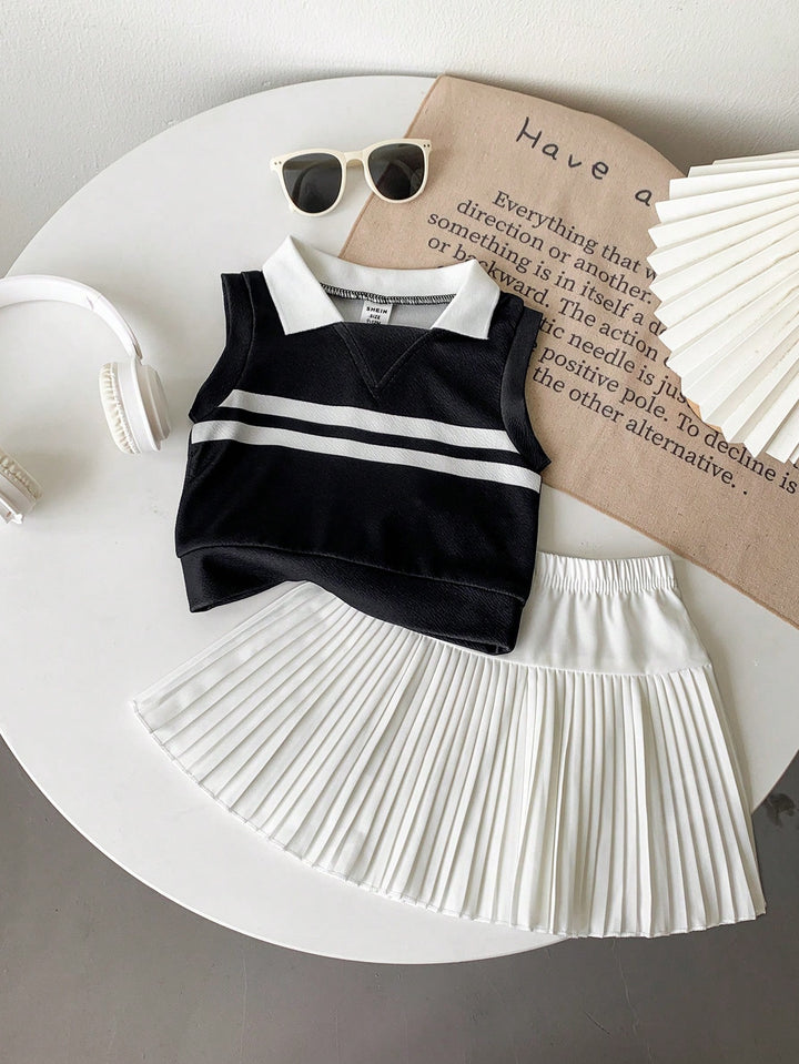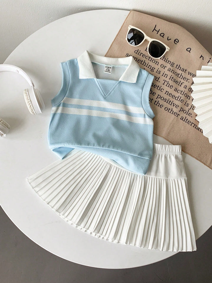 New Tennis Sports Elegant Sleeveless Polo Collar Knit Top And Pleated Skirt