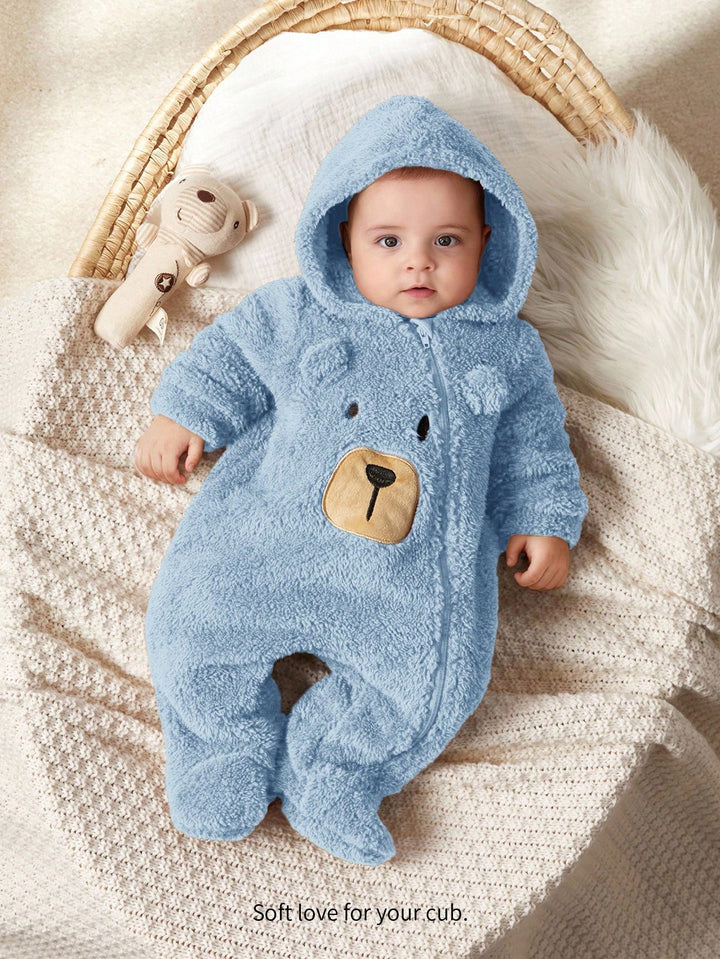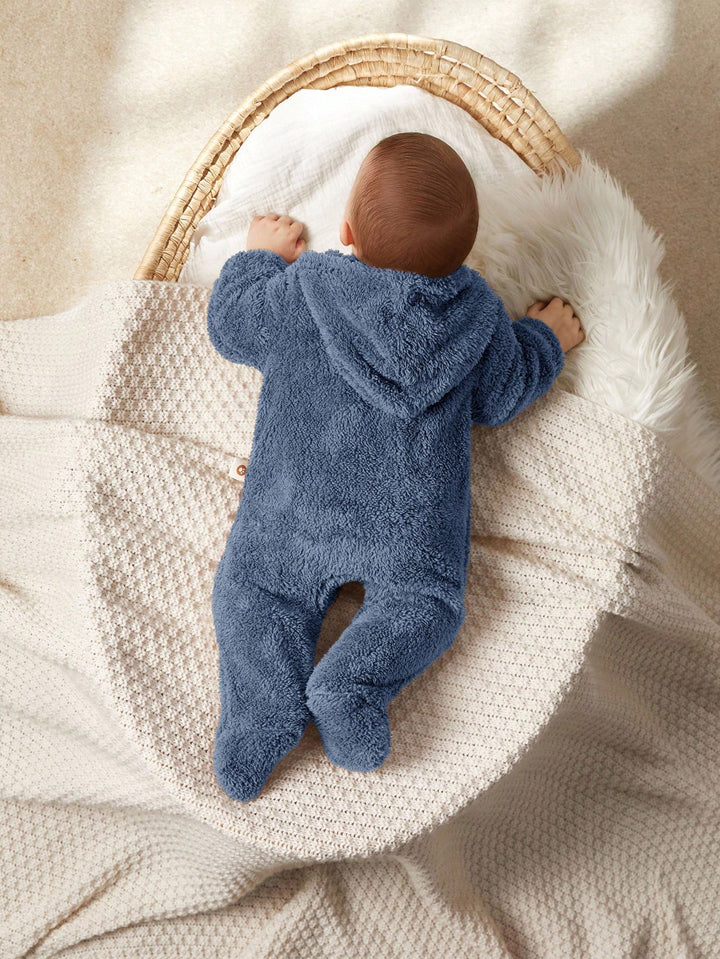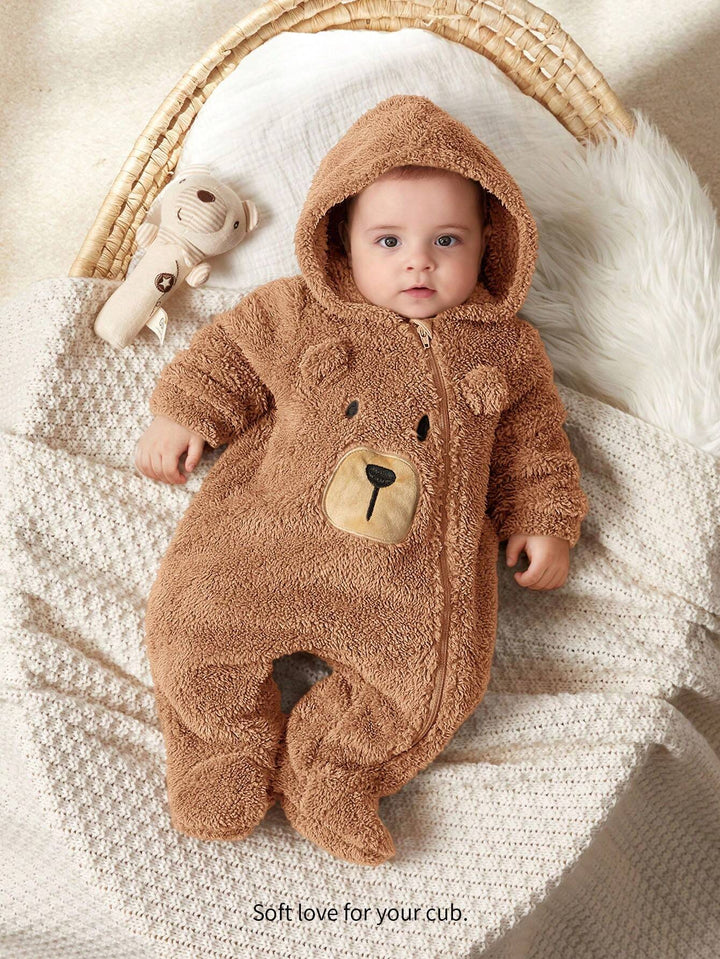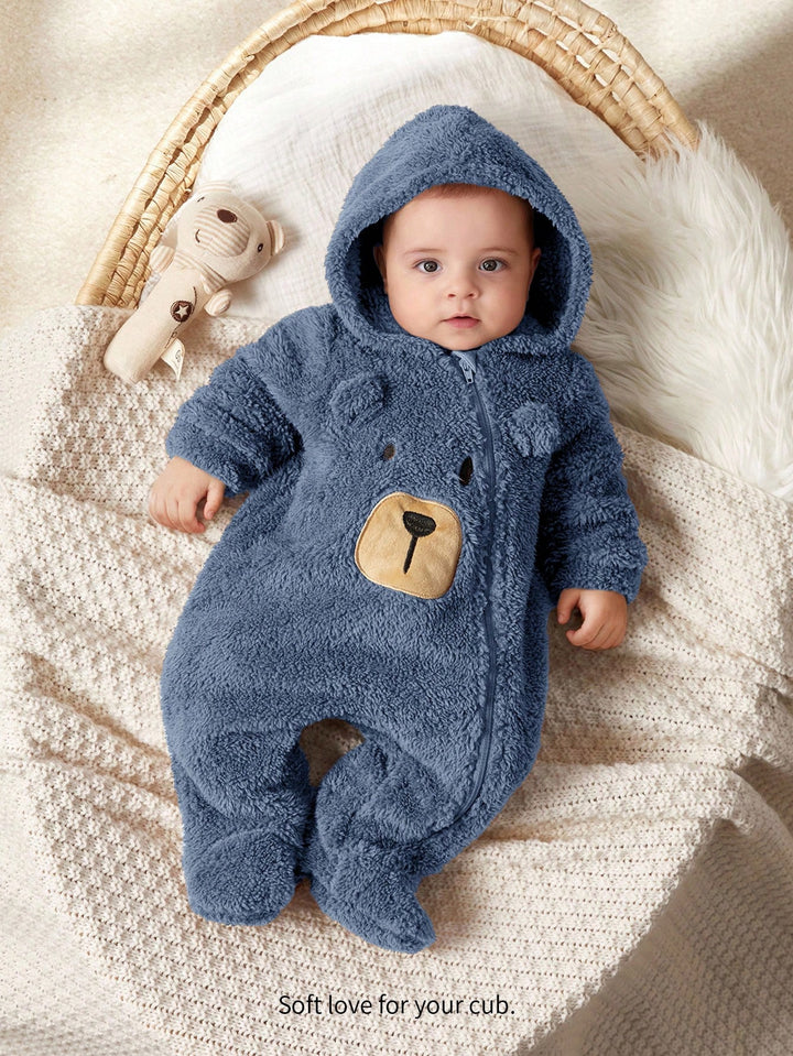 Newborn Baby Boys' Cartoon Bear Ear Hoodie Thick Long Sleeve Jumpsuit