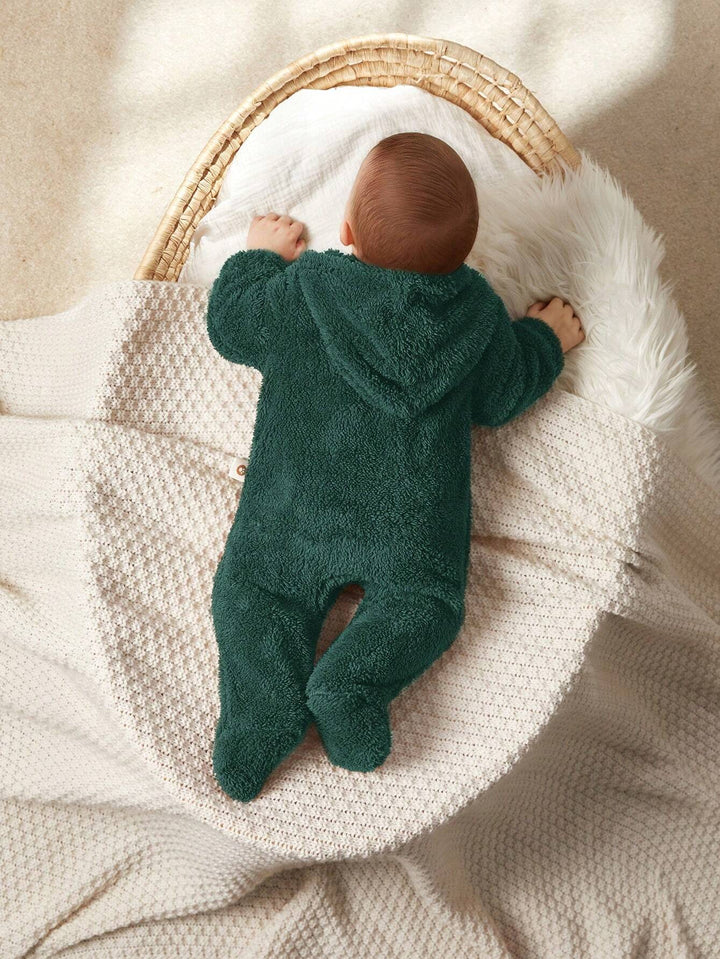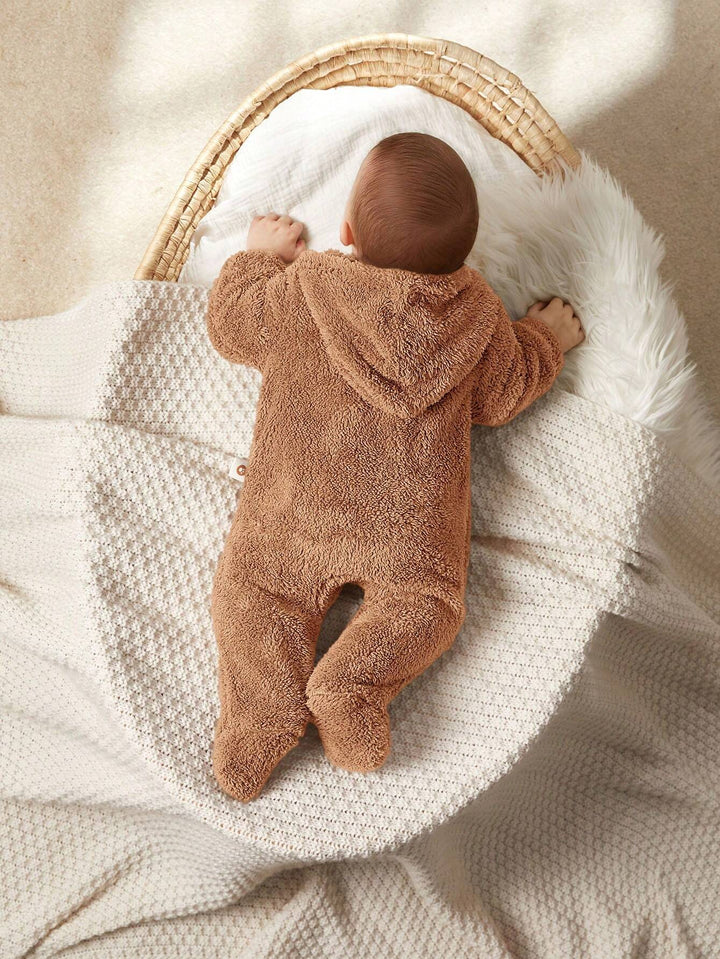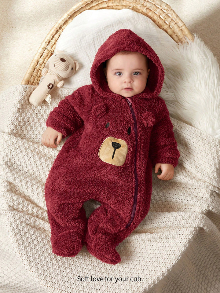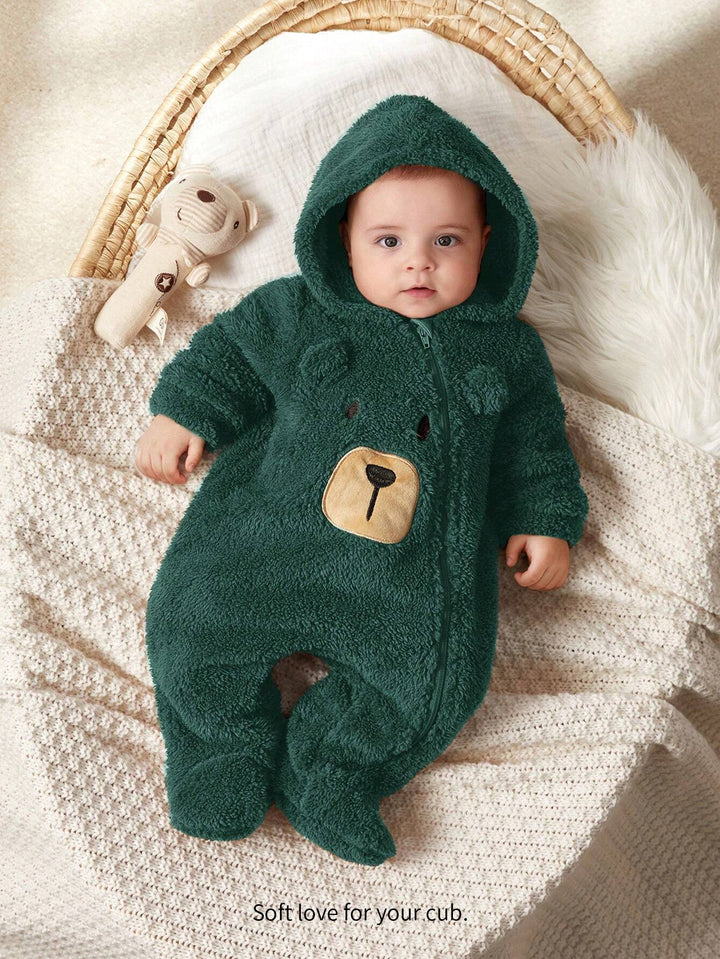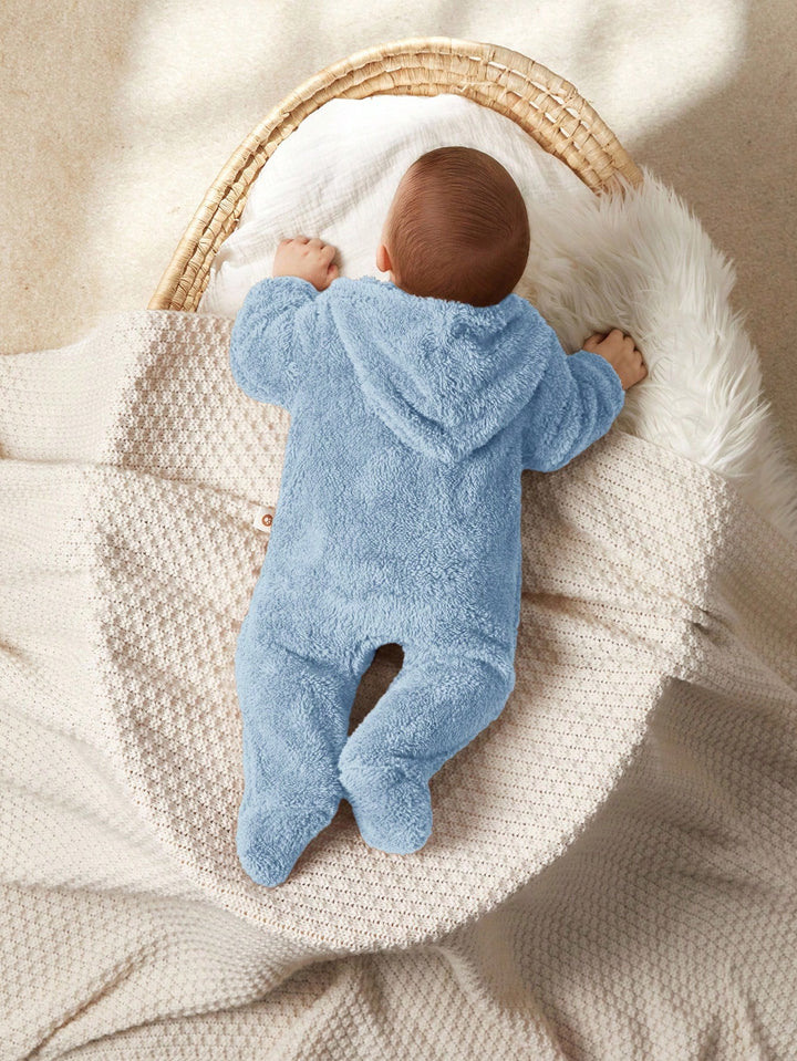 Newborn Baby Boys' Cartoon Bear Ear Hoodie Thick Long Sleeve Jumpsuit