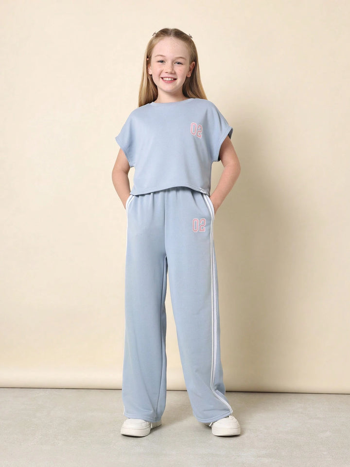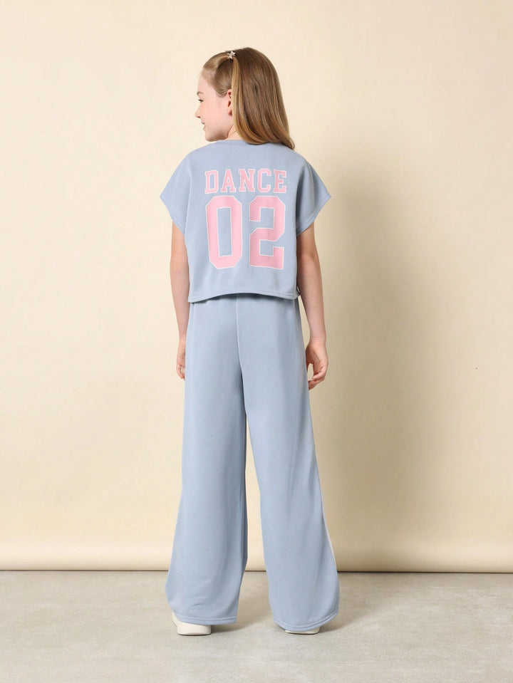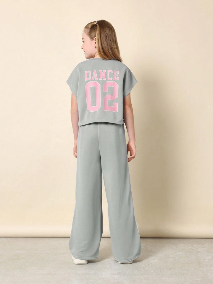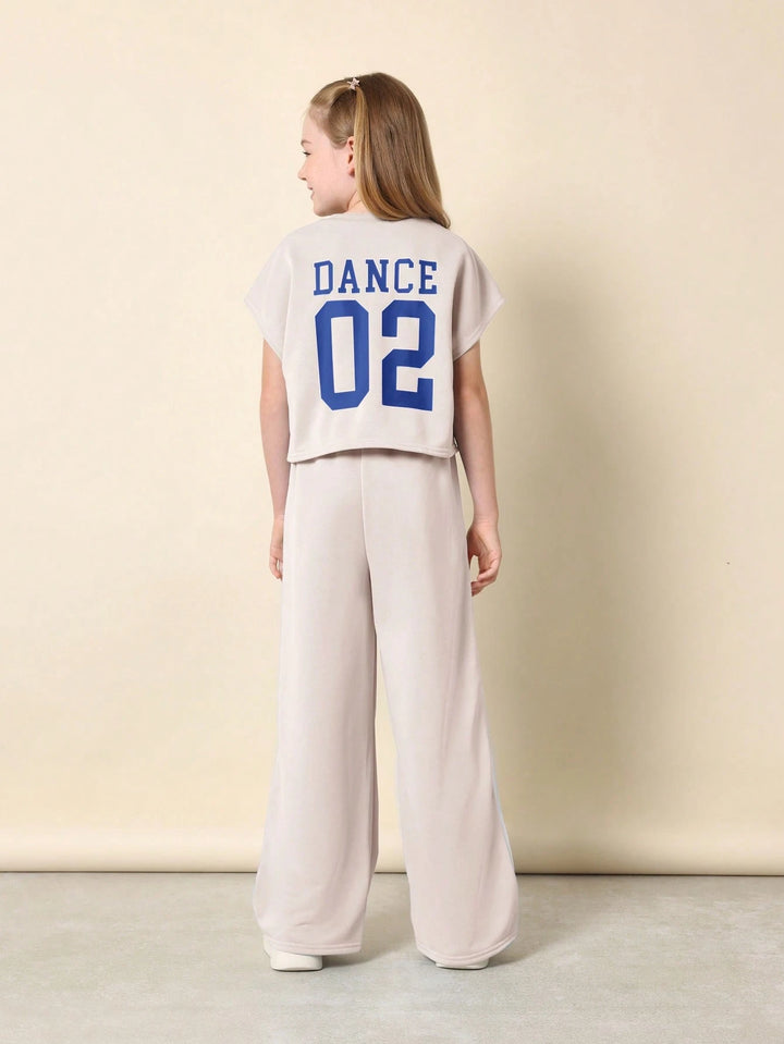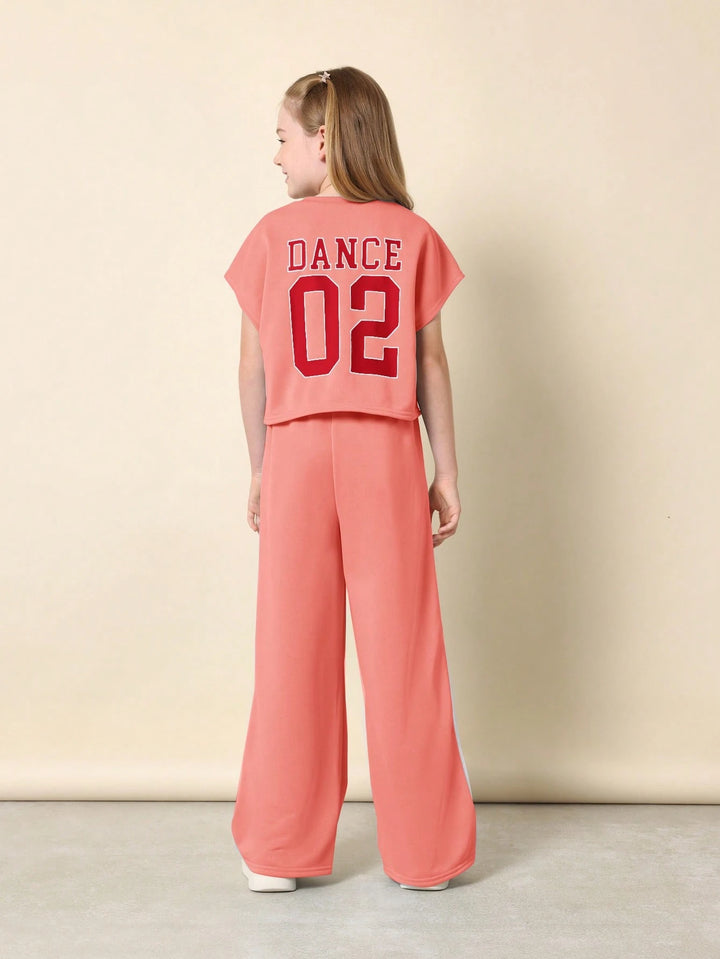 SUMWON Dance Squad Athletic Coordinated Set Slouchy Drop Shoulder Boxy Crop Top Wide Leg Pants