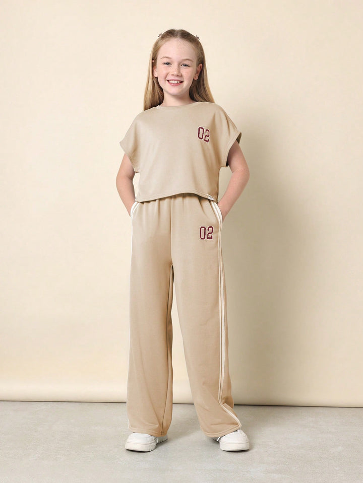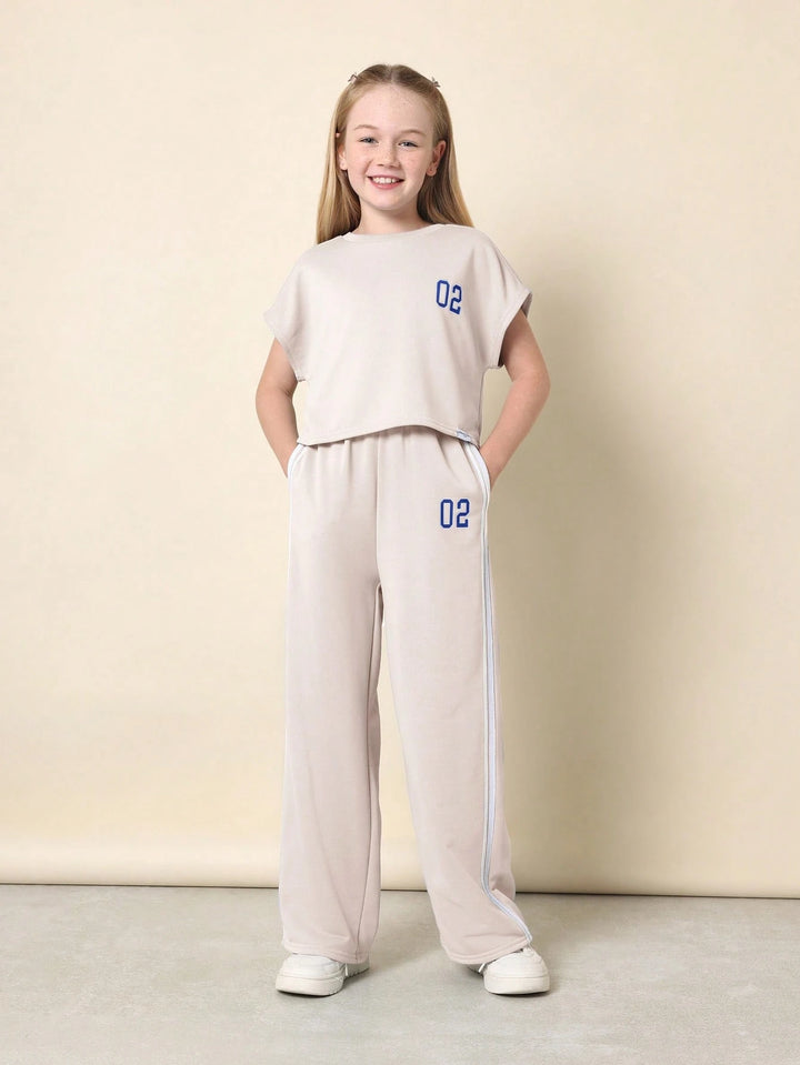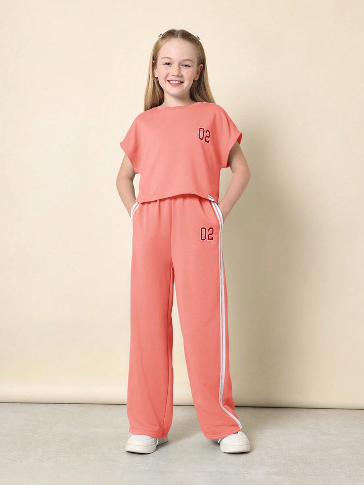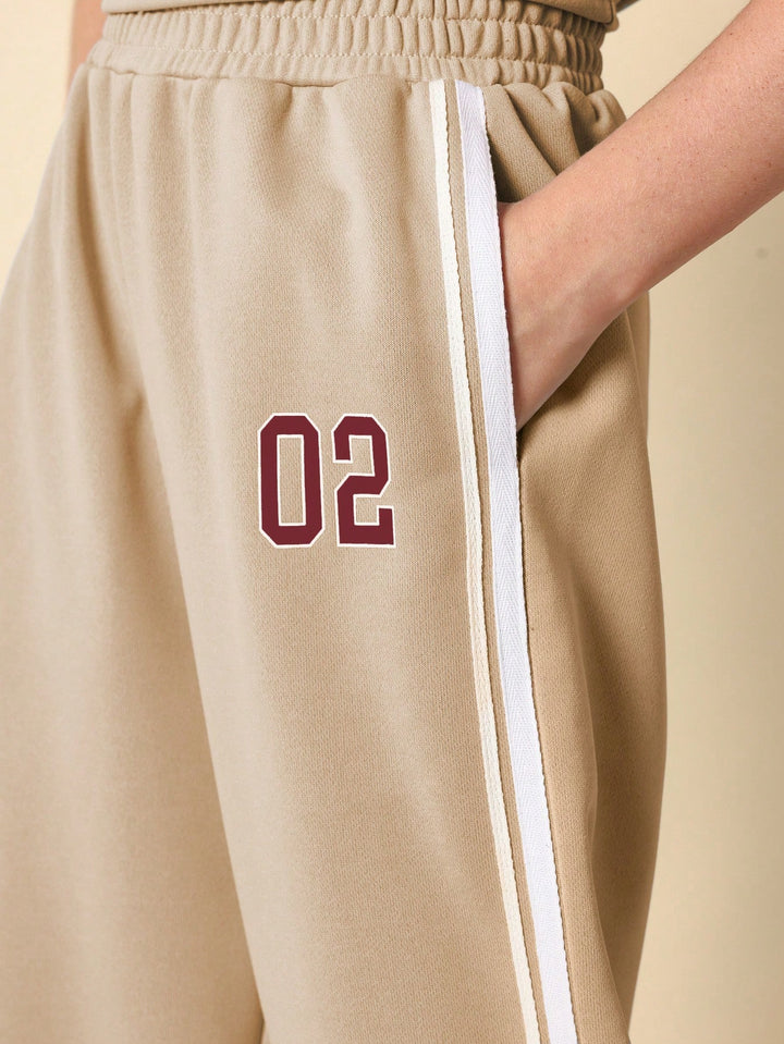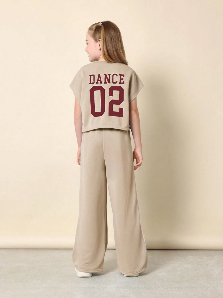 SUMWON Dance Squad Athletic Coordinated Set Slouchy Drop Shoulder Boxy Crop Top Wide Leg Pants