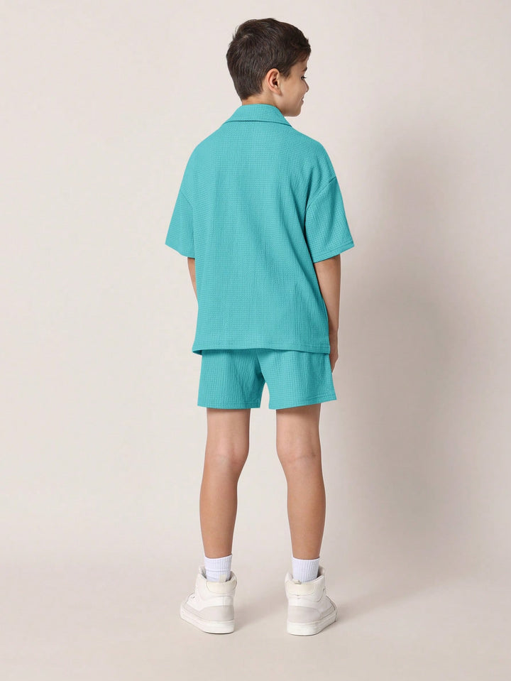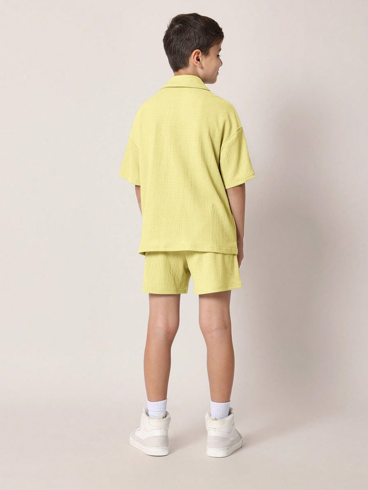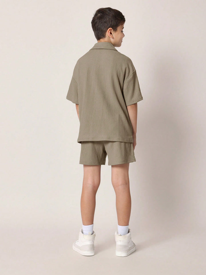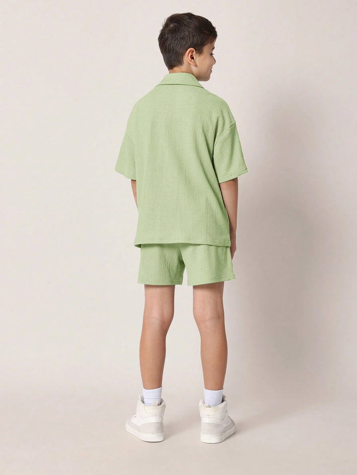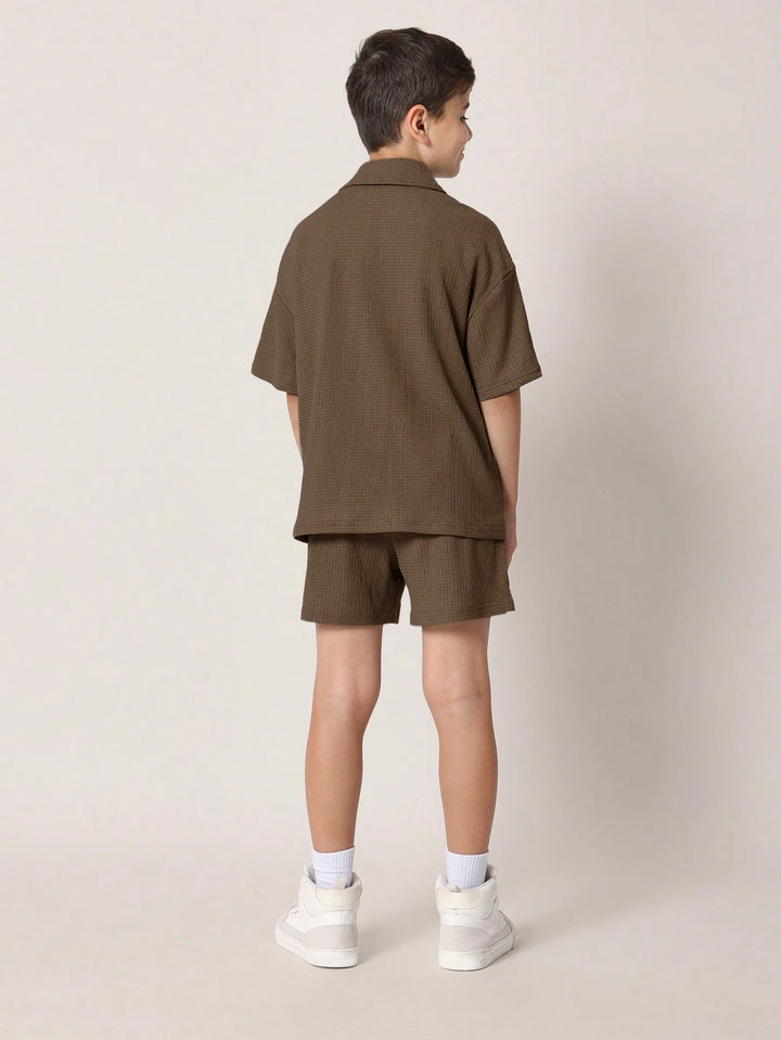 SUMWON Textured Ribbed Knit Polo Two-Piece Short Set
