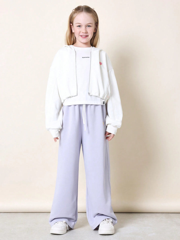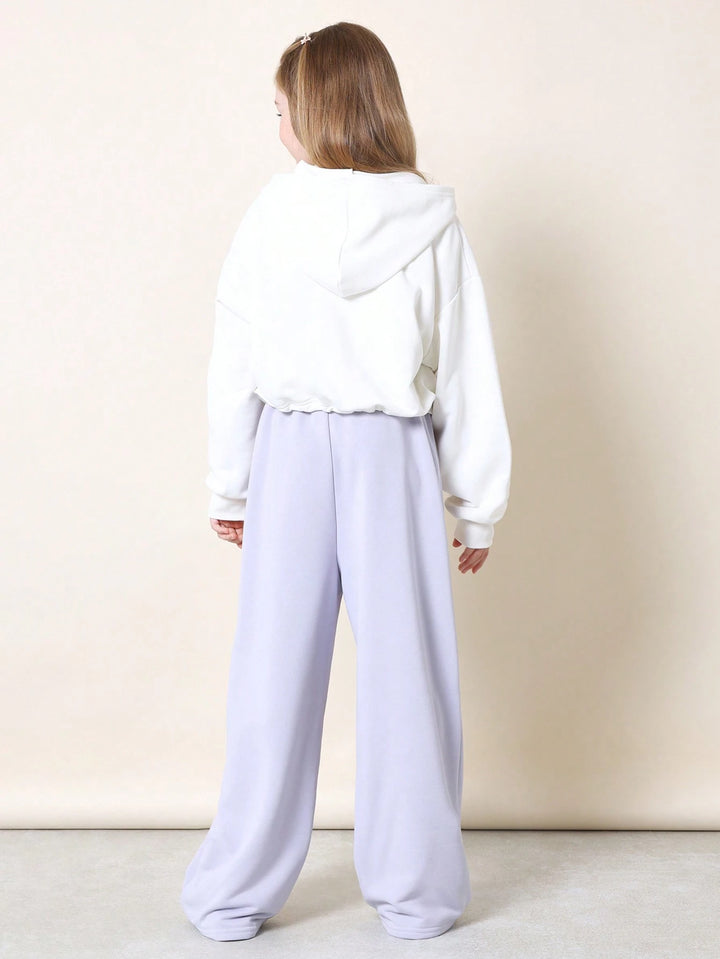 Sweatsuit Coordinated Set Casual Zip-Up Hoodie Wide Leg Track Pants