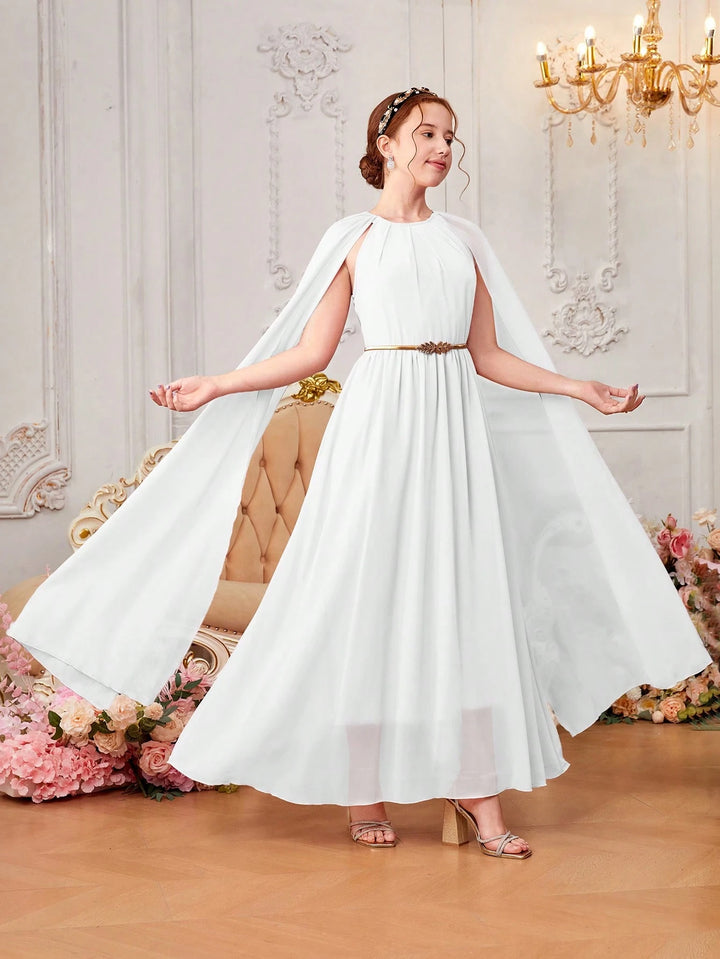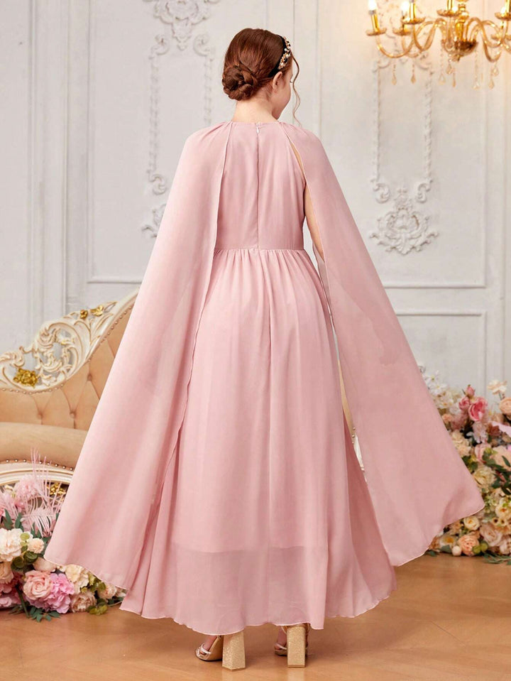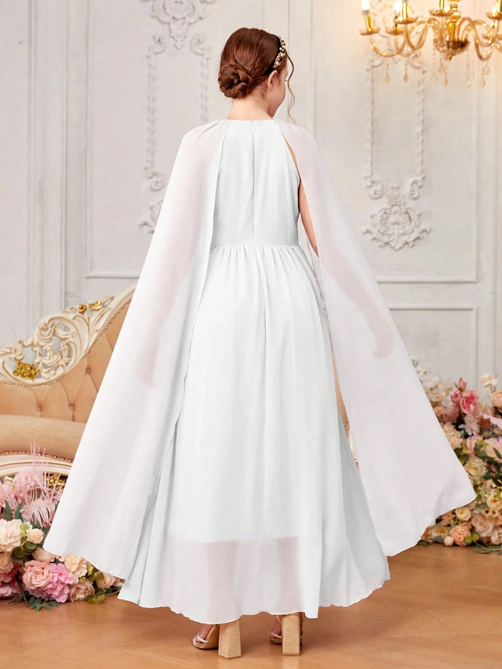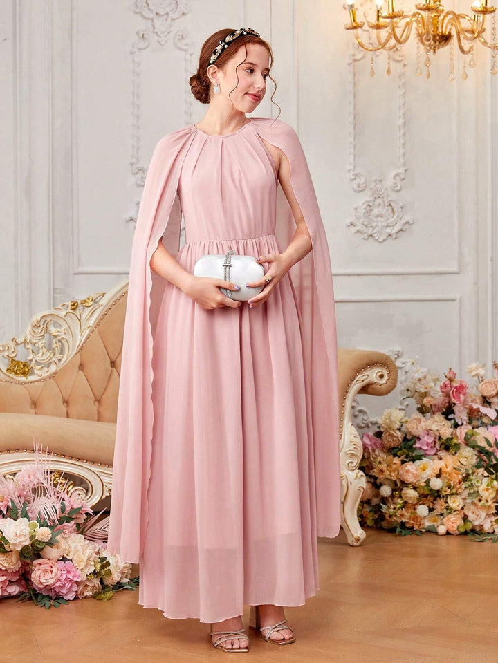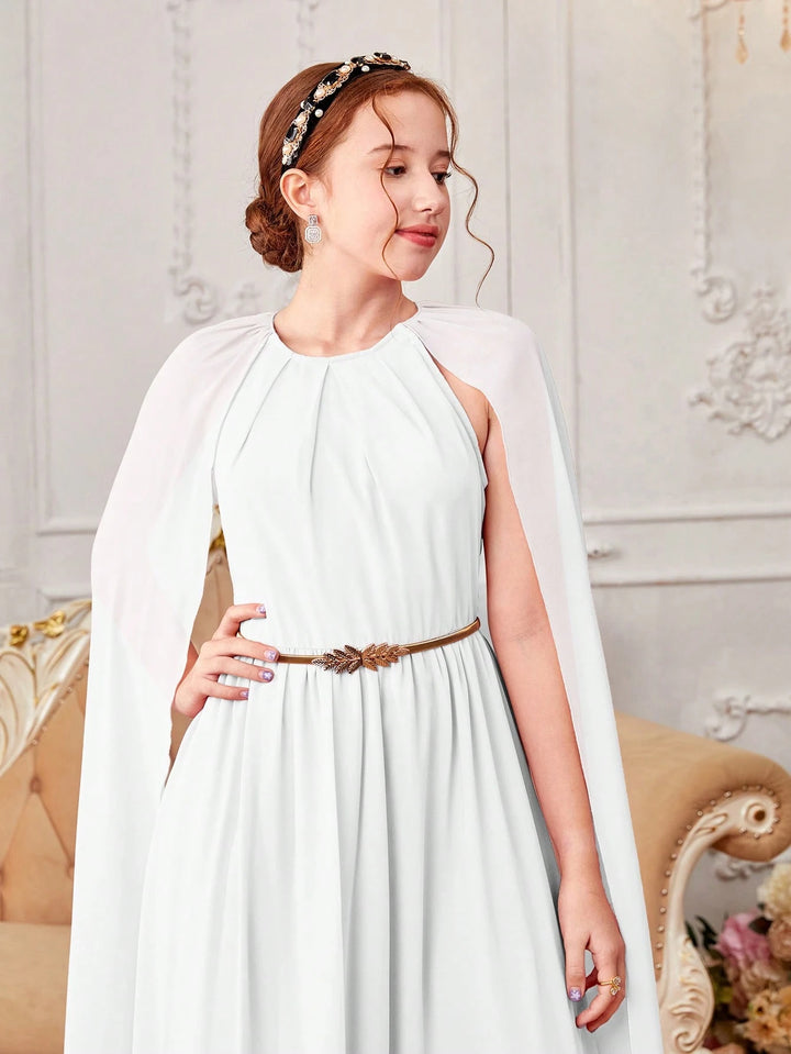 Teen Girls' Woven Chiffon Solid Color Kimono Sleeve Casual Dress