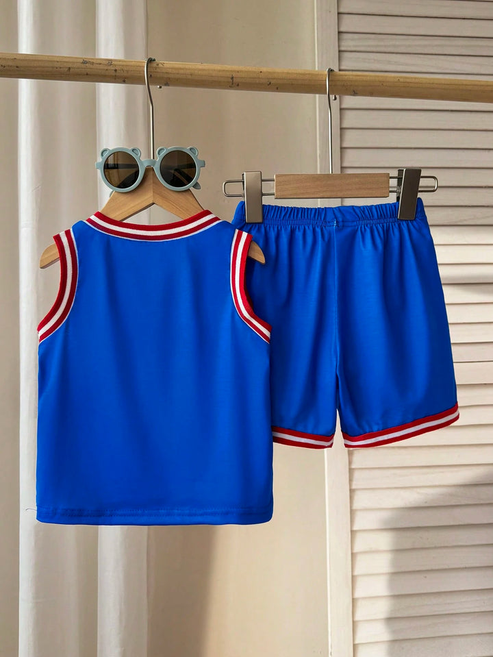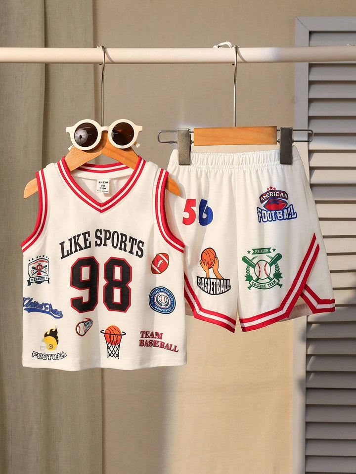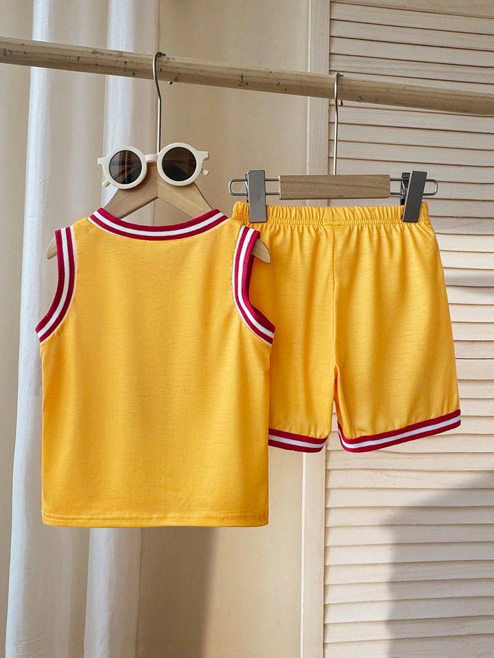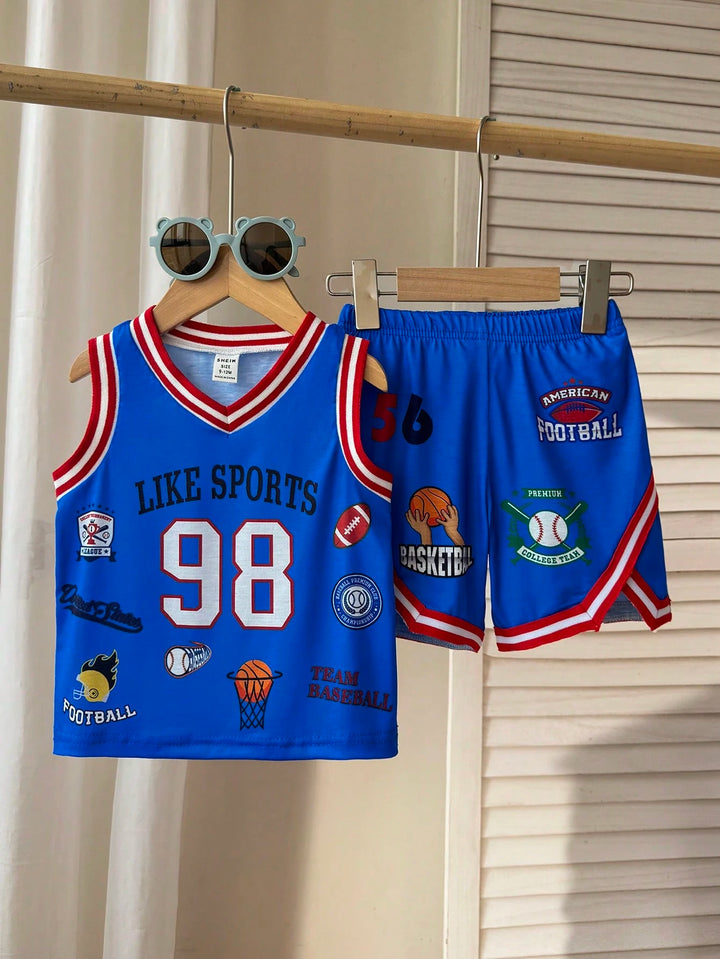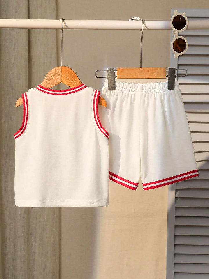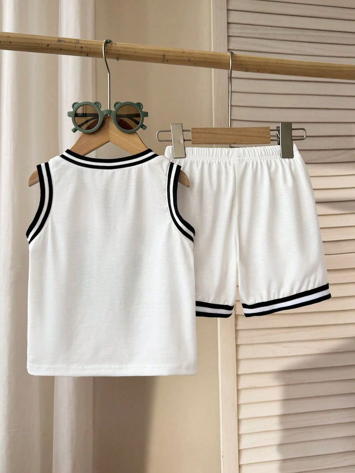Toddler Boys Casual Sports Minimalist Versatile Letter & Numeral Print V-Neck Sleeveless Top & Shorts Set