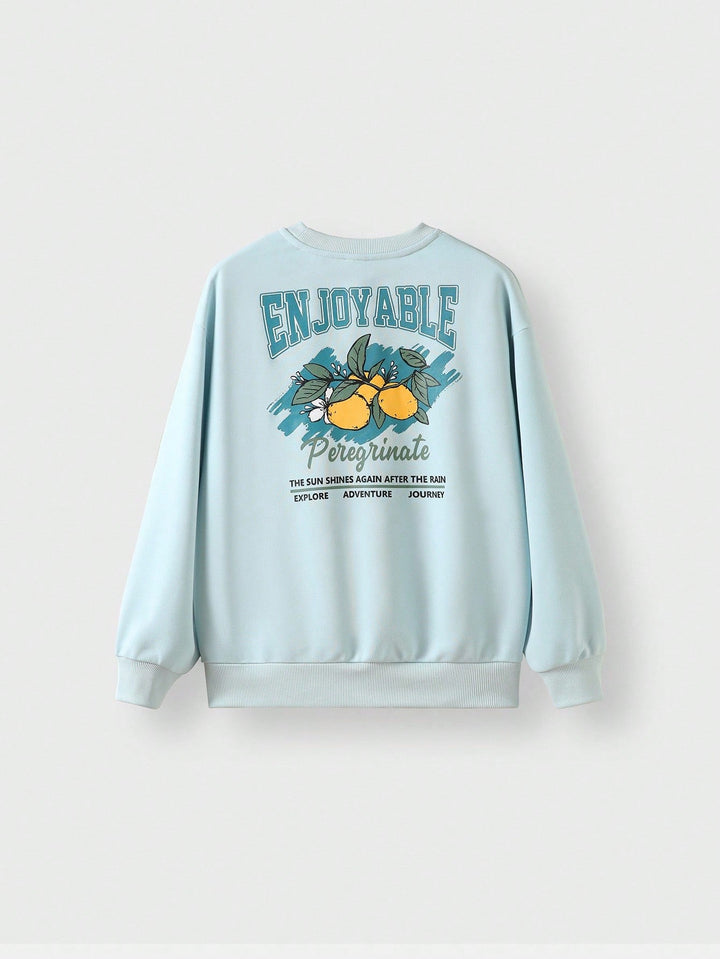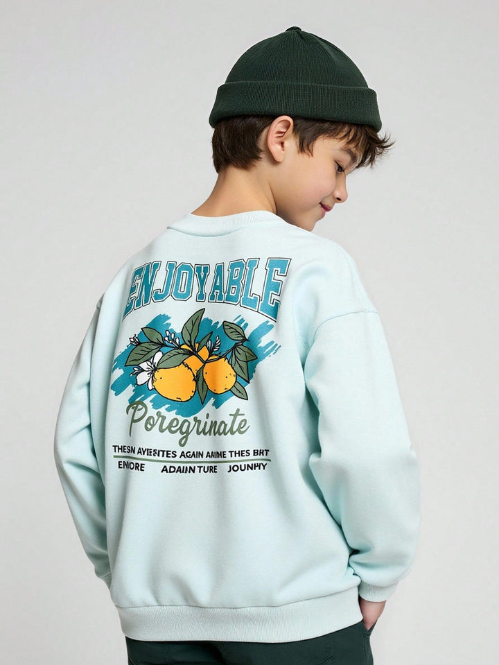 Tween Boy Casual Lemon Print Pullover Sweatshirt