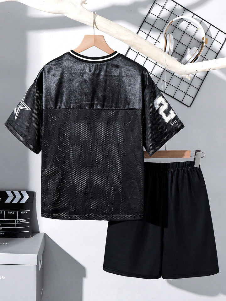Tween Boy Casual School Print Pattern Crew Neck Loose Fit Short Sleeve T-Shirts