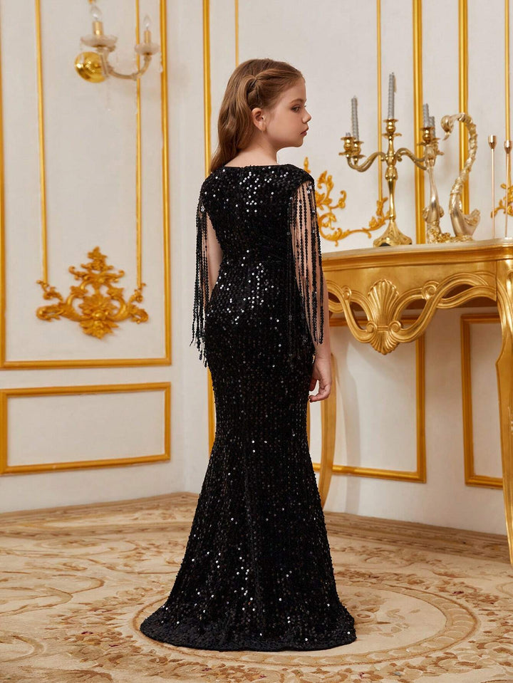 Tween Girl Heart Shaped Neckline Sequin Fringe Mermaid Formal Dress
