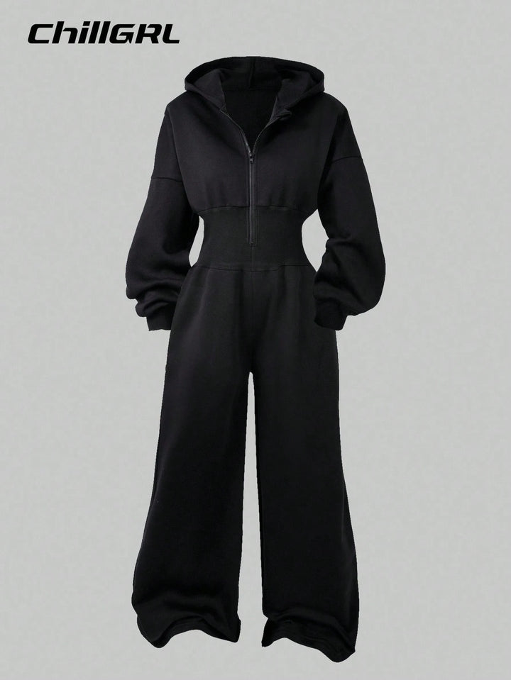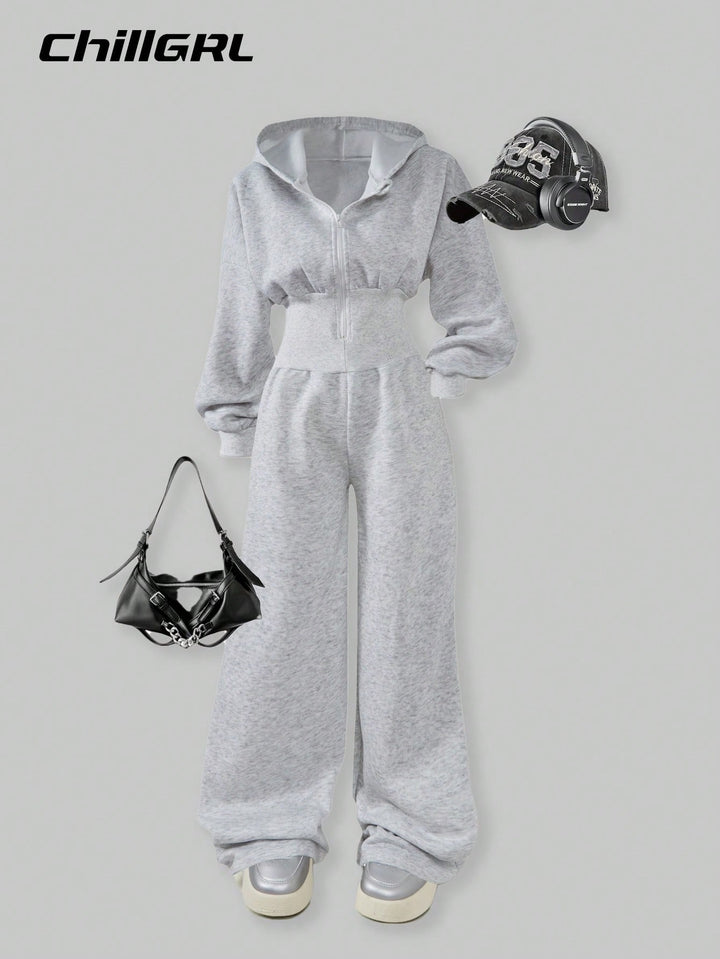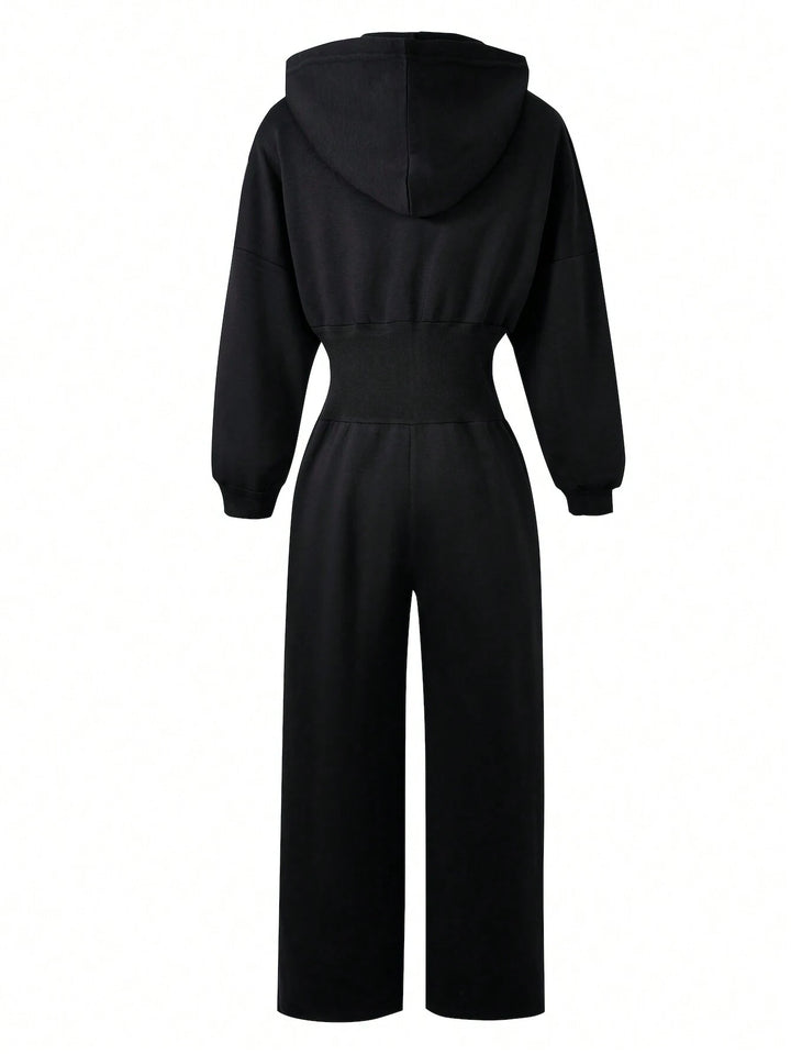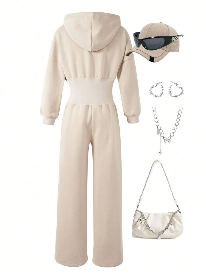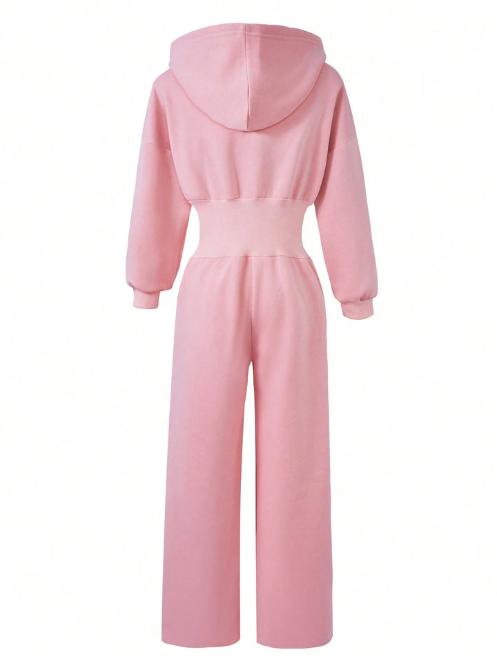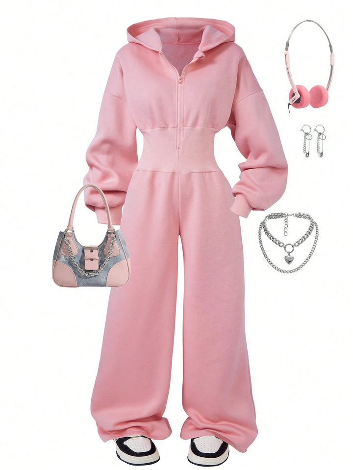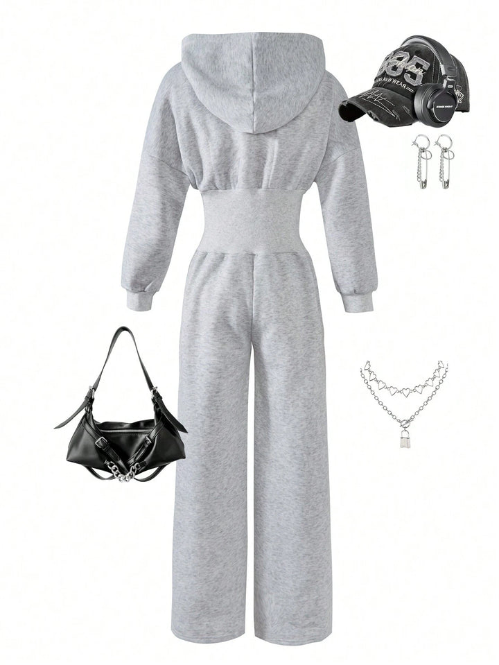 Tween Girl Hooded Zip-Up Sweatshirt And High Waisted Thermal Lined Pants Jumpsuit